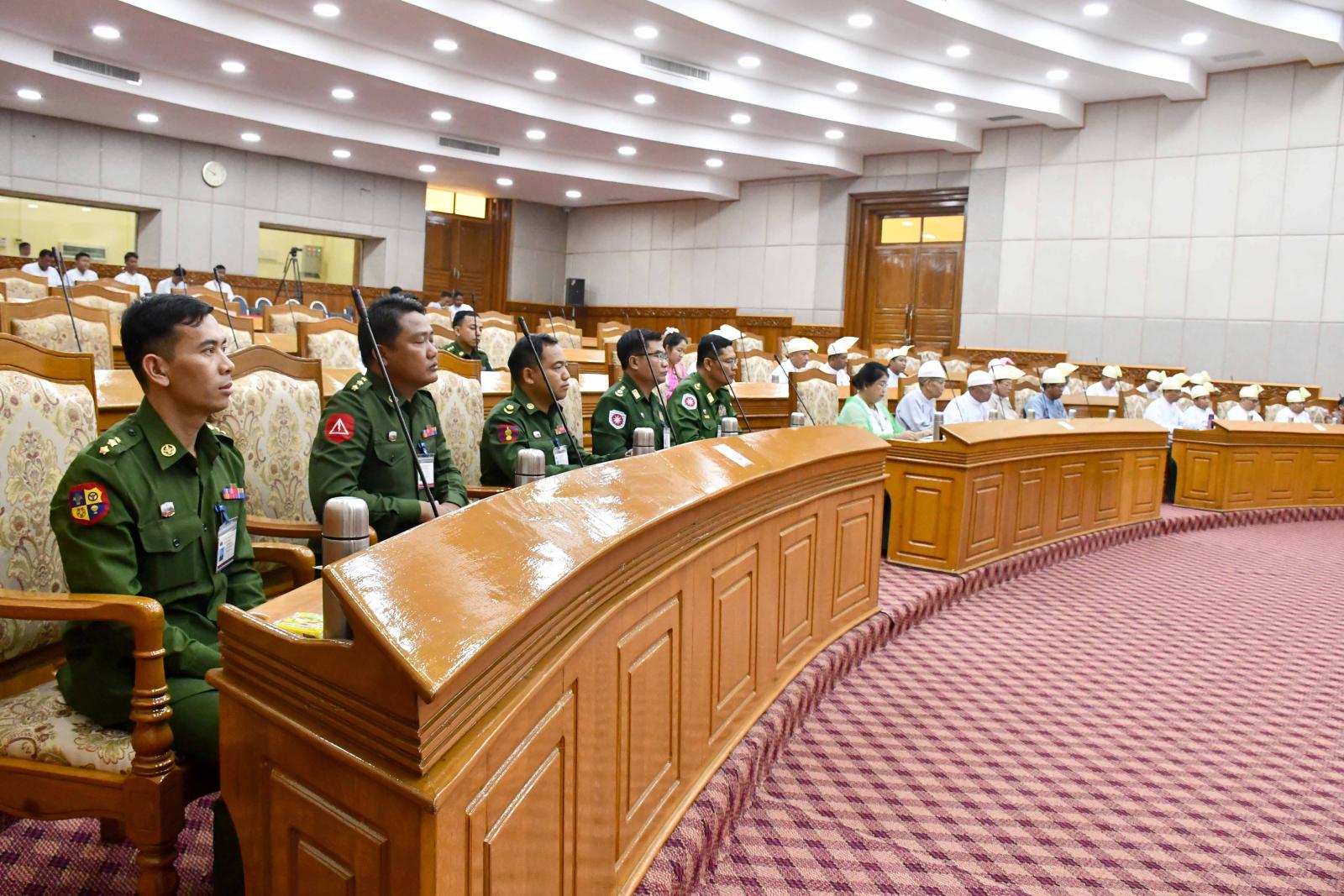 ထို့နောက် ရခိုင်ပြည်နယ်လွှတ်တော်ဒုတိယဥက္ကဋ္ဌ ဒေါက်တာထင်လင်းဦးက ဖွဲ့စည်းရန်လျာထားသည့် ဥပဒေပြုရေးကော်မတီတွင် အမ်းမြို့နယ်မဲဆန္ဒနယ်အမှတ်(၂)မှ ဦးမြသန်းအား ဥက္ကဋ္ဌအဖြစ်လည်းကောင်း၊ အတွင်းရေးအမှူးအဖြစ် ရမ်းဗြဲမြို့နယ်မဲဆန္ဒနယ်အမှတ် (၂) မှ ဒေါ်ခိုင်ဇင်ဦးနှင့် ကော်မတီဝင် (၇) ဦးတို့အားလည်းကောင်း၊ တိုင်းရင်းသားလူမျိုးများအရေး လေ့လာရေးကော်မတီတွင် ကျောက်ဖြူမြို့နယ်မဲဆန္ဒနယ် အမှတ်(၂)မှ ဦးအောင်စောသိန်းအားဥက္ကဋ္ဌအဖြစ်လည်းကောင်း၊ အတွင်းရေးအမှူးအဖြစ် ပေါက်တောမြို့နယ်မဲဆန္ဒနယ်အမှတ် (၂) မှ ဦးသာထွန်းနှင့် ကော်မတီဝင် (၇) ဦးတို့အားလည်းကောင်း၊ ပြည်နယ်လွှတ်တော်ကိုယ်စားလှယ်များ စိစစ်ရေးကော်မတီတွင် တပ်မတော်သား ပြည်နယ်လွှတ်တော်ကိုယ်စားလှယ် ဗိုလ်မှူးကျော်ဇေယျအားဥက္ကဋ္ဌအဖြစ်လည်းကောင်း၊ အတွင်းရေးအမှူးအဖြစ် မင်းပြားမြို့နယ်မဲဆန္ဒနယ်အမှတ် (၂) မှ ဦးစောသိန်းထွန်းနှင့် ကော်မတီဝင် (၅) ဦးတို့အားလည်းကောင်း၊ ဖွဲ့စည်းတာဝန်ပေးအပ်ရန် လျာထားသည့်အမည်စာရင်းအား ပြည်နယ်လွှတ်တော်သို့တင်ပြပြီး ပြည်နယ်လွှတ်တော်၏အဆုံးအဖြတ်ကို ရယူသည်။