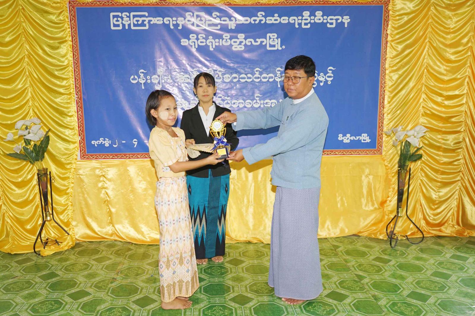 ယင်းနောက် လက်ထောက်ညွှန်ကြားရေးမှူးနှင့်တာဝန်ရှိသူများက အင်္ဂလိပ်စာနှင့် ပန်းချီသင်တန်းများတွင် ဆုရရှိသည့် ကျောင်းသားကျောင်းသူများအား ဆုများပေးအပ်ခဲ့ရာ သင်တန်းသားသင်တန်းသူများကိုယ်စား သင်တန်းသူတစ်ဦးက ကျေးဇူးတင်စကားပြောကြားခဲ့ကြောင်း သိရသည်။