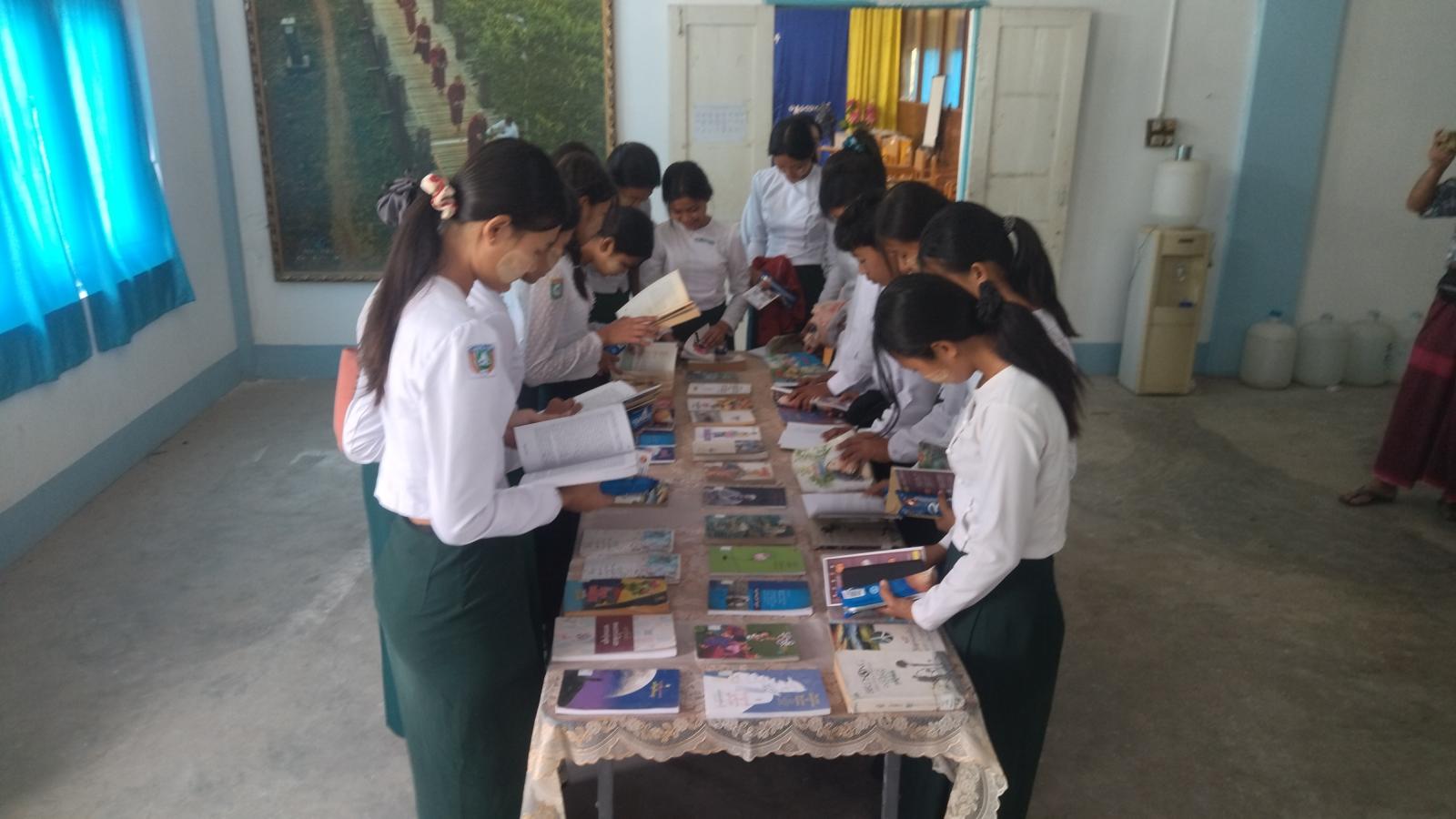 ယင်းနောက် ခရိုင်ပြန်ကြားရေးနှင့်ပြည်သူ့ဆက်ဆံရေးဦးစီးဌာနမှ ခင်းကျင်းပြသထားသော သုတ၊ ရသစာအုပ်စာစောင်များနှင့် အသိပညာပေး နံရံကပ်စာစောင်များကို ပြသခဲ့ရာ တက်ရောက်လာသည့် ကျောင်းသူ၊ ကျောင်းသားများက ကြည့်ရှုလေ့လာခဲ့ကြောင်း သိရသည်။