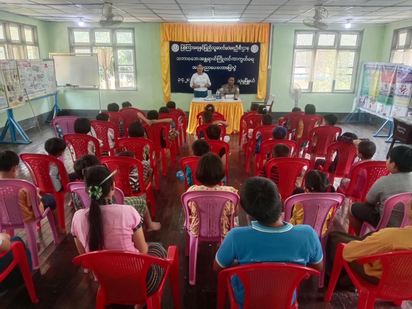 ဦးစွာ မြို့နယ်ပြန်ကြားရေးနှင့်ပြည်သူ့ဆက်ဆံရေးဦးစီးဌာန၊ ဦးစီးအရာရှိ ဒေါ်တင်တင်ထွေးက သဘာဝဘေးအန္တရာယ်ကင်းဝေးစေရေး သတိပြုလိုက်နာ ရှောင်ရှားသင့်သည့် အကြောင်းအရာများကို ပြောကြားပြီး မြို့နယ်ကြက်ခြေနီအသင်းခွဲရုံးမှ တပ်စုမှူး ဦးလင်းနိုင်ထွန်းက ငလျင်အန္တရာယ်သည် ကြိုတင်ခန့်မှန်းနိုင်မှုမရှိကြောင်း၊ အချိန်အခါမရွေး လှုပ်ခတ်နိုင်သောကြောင့် အန္တရာယ်ကင်းရှင်းစေရေးအတွက် နေထိုင်ပြုမူရမည့်အချက်များ၊ ငလျင်လှုပ်နေစဥ်ဆောင်ရွက်ရန်အချက်များ၊ ငလျင်လှုပ်ပြီးနောက် ဆောင်ရွက်ရမည့် နည်းလမ်းများ၊ ငလျင်ဘေးအန္တရာယ်နှင့်ပတ်သက်၍ အချိန်တိုင်းဂရုပြုနေထိုင်ကြရန် အသိပညာပေး ဟောပြောခဲ့ကြောင်း သိရသည်။