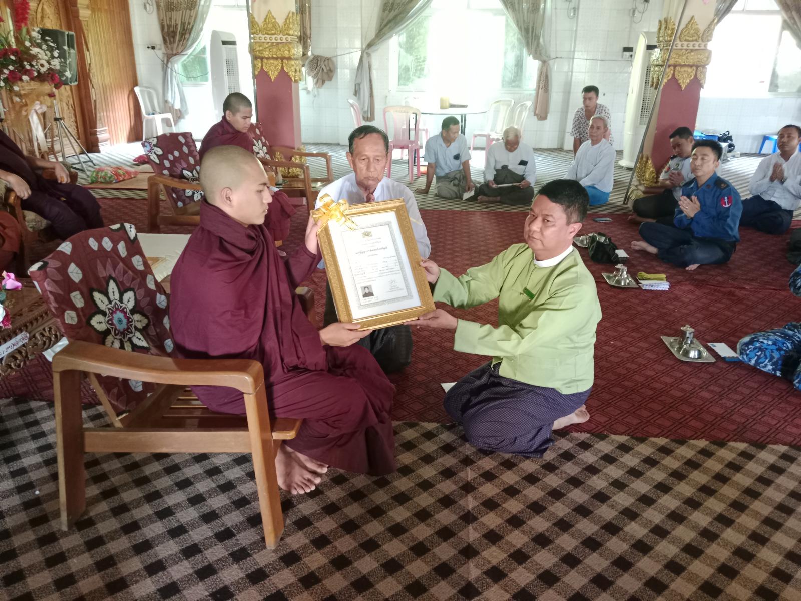 ဦးစွာ နမောတဿ သုံကြိမ်ရွတ်ဆို၍ ဘုရားကန်တော့၍ အခမ်းအနားကိုဖွင့်လှစ်သည်။ ယင်းနောက် မြို့နယ်သံဃနာယကအဖွဲ့ဥက္ကဋ္ဌ ဆရာတော်ဘဒ္ဒန္ဒသုမနသီရိ (ပဥ္စဂါမကျောင်းတိုက်) ထံမှ ဌာနဆိုင်ရာအကြီးအကဲများက ငါးပါးသီလခံယူဆောက်တည်ကာ ဆရာတော်ထံမှ သြဝါဒကထာနာကြားခဲ့ပြီး စာအောင်သံဃာတော်များအား အောင်လက်မှတ်နှင့် ဆုတော်ငွေများကို မြို့နယ်စီမံခန့်ခွဲရေးနှင့် အုပ်ချုပ်ရေးကော်မတီဥက္ကဋ္ဌနှင့်အဖွဲ့ဝင်များက ဆပ်ကပ်လှူဒါန်းခဲ့ကြောင်း သိရသည်။
