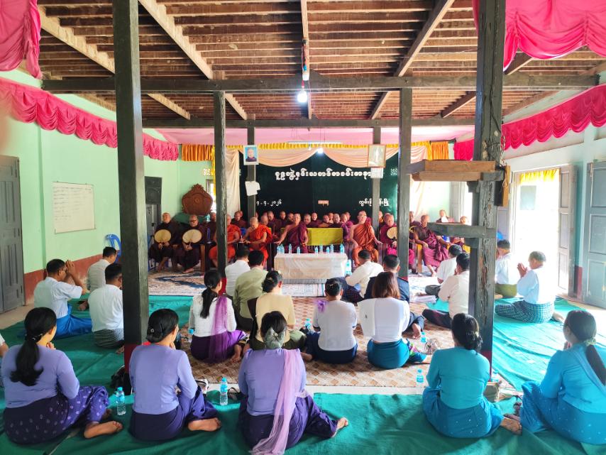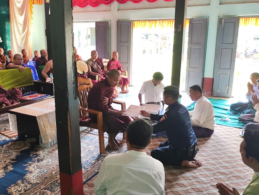 ဦးစွာ နမောတဿ သုံးကြိမ်ရွတ်ဆို၍ ဘုရားကန်တော့၍ အခမ်းအနားကို ဖွင့်လှစ်သည်။ ယင်းနောက် မြို့နယ်သံဃနာယကအဖွဲ့ဥက္ကဋ္ဌ ဆရာတော် ဥူးပဏ္ဍိတ)ထံမှ ဌာနဆိုင်ရာ အကြီးအကဲများက ငါးပါးသီလ ခံယူဆောက်တည်ကာ ဆရာတော်ထံမှ သြဝါဒကထာ နာကြားခဲ့ပြီးစာဖြ စာအောင်တော်မူကြသည့် ဓမ္မာစရိယ(၄)ပါး၊ ပထမကြီး(၂)ပါး၊ပထမလတ် (၃)ပါး၊ပထမငယ် (၃)ပါး၊ အခြေပြုမူလတန်း (၁၇)ပါး၊ စုစုပေါင်း (၂၉)ပါးတို့အား စာအောင်လက်မှတ်နှင့် ဝတ္ထုငွေများ ဆက်ကပ်လှူဒါန်းခြင်းနှင့် ကြွရောက်တော်မူလာကြသည့် မြို့နယ်သံဃာ့နာယကအဖွဲ့၊ ဩဝါဒစရိယ ဆရာတော်များအား ဝတ္ထုငွေများ ဆက်ကပ်လှူဒါန်းခြင်းများကို မြို့နယ်စီမံခန့်ခွဲရေးနှင့် အုပ်ချုပ်ရေးကော်မတီအဖွဲ့ဝင်များ၊ ဌာနဆိုင်ရာများက ဆပ်ကပ်လှူဒါန်းခဲ့ကြောင်း သိရသည်။