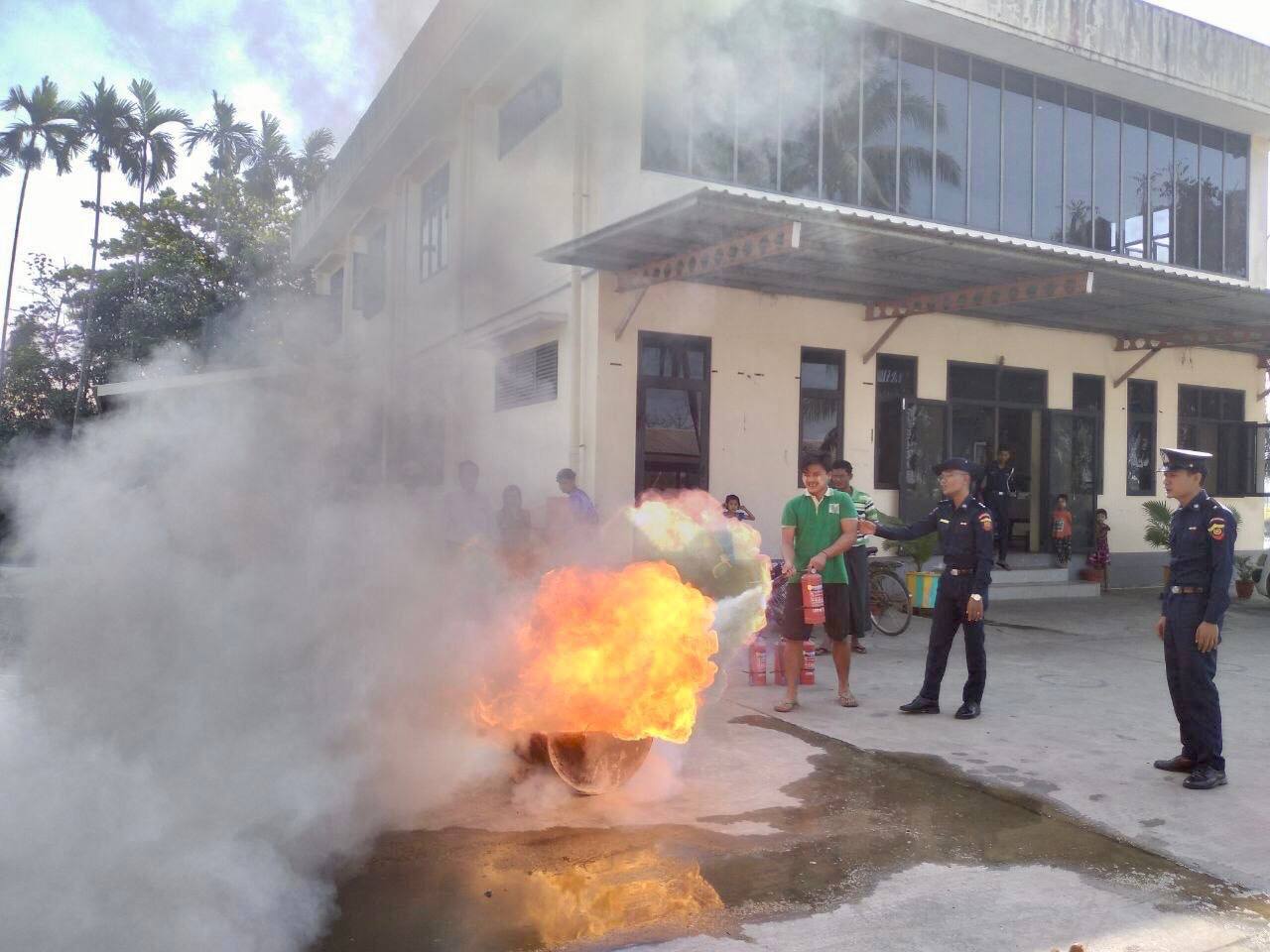 မြောင်းမြမြို့တွင် မီးဘေးလုံခြုံရေးအသိပညာပေးခြင်းနှင့် ဇာတ်တိုက်လေ့ကျင့်ခြင်းဆောင်ရွက်