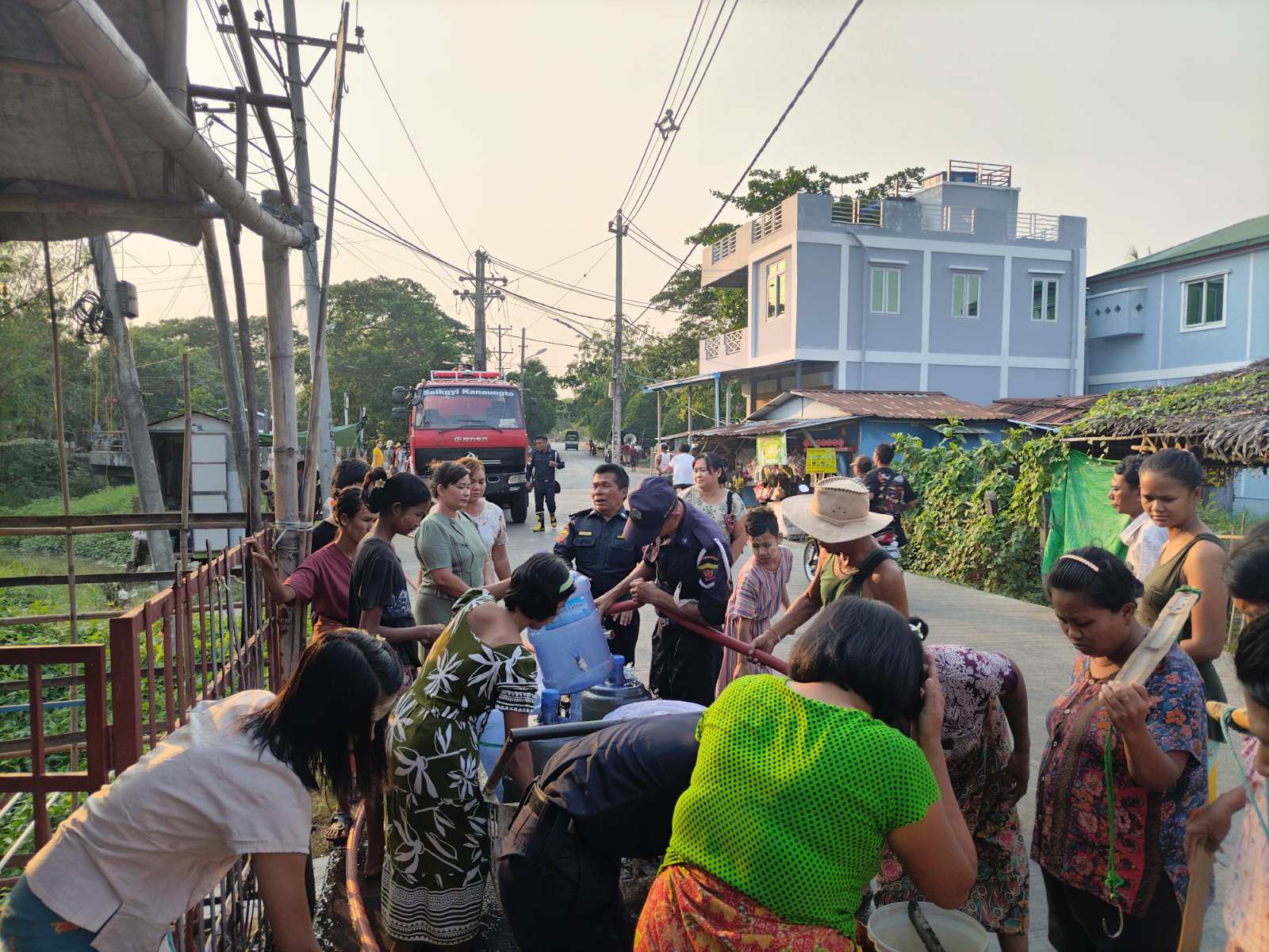 ထိုသို့ လိုက်လံဖြန့်ဝေပေးရာတွင် မြို့နယ်မီးသတ်ဦးစီးဌာနမှ ဒုတိယဦးစီးမှူး ဦးထွန်းထွန်းအောင် ဦးဆောင်၍ မီးသတ်တပ်ဖွဲ့ဝင်များက ရေဂါလံ ၁၆၀၀ ဆံ့ကားဖြင့် ခနောင်တိုအရှေ့ရပ်ကွက်ရှိ သောက်သုံးရေခက်ခဲသည့် အိမ်ထောင်စုများအား သောက်သုံးရေများ လိုက်လံဖြန့်ဝေလှူဒါန်းပေးလျက်ရှိပြီး၊ ကျန်ရှိသည့် ရပ်ကွက်များအလိုက်လည်း ယခုကဲ့သို့နေ့စဉ် သောက်သုံးရေများ လိုက်လံဖြန့်ဝေလှူဒါန်းပေးသွားမည်ဖြစ်ကြောင်း မြို့နယ်မီးသတ်ဦးစီးဌာနမှ သိရသည်။