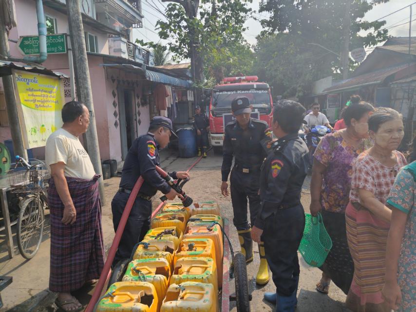အဆိုပါသောက်သုံးရေလိုက်လံဖြန့်ဝေပေးရာသို့ သက်ဆိုင်ရာရပ်ကွက်အုပ်ချုပ်ရေးအဖွဲ့ဝင်များ၊ လူမှုရေးအသင်းအဖွဲ့များ၊ ရပ်ကွက်နေပြည်သူများက ဝိုင်းဝန်းကူညီဆောင်ရွက်ပေးလျက်ရှိကြောင်း သိရသည်။