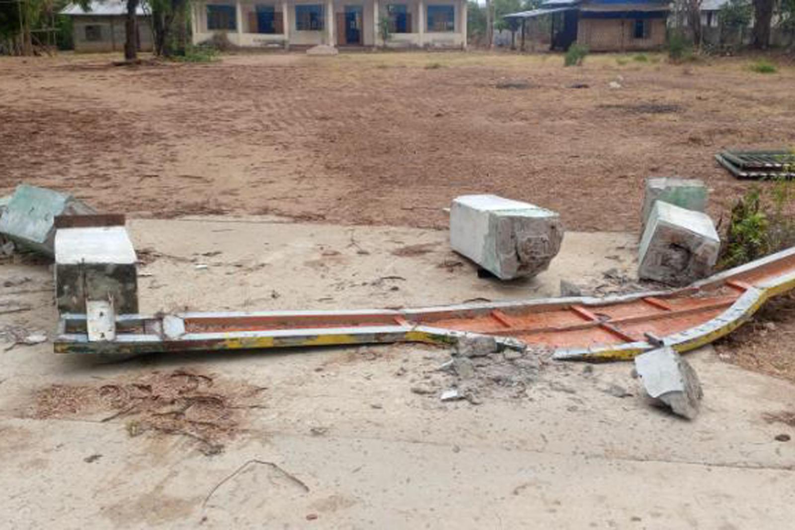 ပျော်ဘွယ်မြို့နယ်၌ လေပြင်းတိုက်ခတ်မှုကြောင့် ဝါးရင်းတုတ်ကျေးရွာအုပ်စု၊ ငန့်ဇင်းကျေးရွာ အခြေခံပညာမူလတန်းကျောင်းအဝင်ဆိုင်ဘုတ်မှာ ဧပြီလ ၇ ရက်၊ ညနေ ၄ နာရီခွဲအချိန်ခန့်က လဲကျပျက်စီးခဲ့ကြောင်း သိရသည်။
