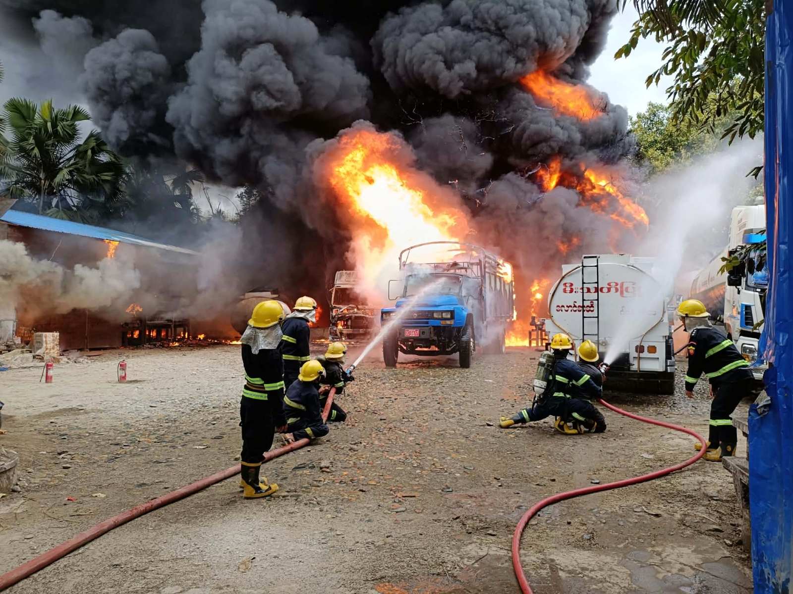 မီးလောင်မှုဖြစ်ပွားရာသို့ ပြည်နယ်မီးသတ်ဦးစီးမှူးရုံးမှ ညွှန်ကြားရေးမှူး ဦးသန်းဇော်ဦး ဦးဆောင်၍ မီးသတ်တပ်ဖွဲ့ဝင် (၄၀) ဦး၊ အရန် (၂၀) ဦး၊ မီးငြှိမ်းသတ်ယာဉ် (၂) စီး၊ ရေသယ်ယာဉ် (၄) စီး၊ မီးသတ်စက်ယာဉ် (၁) စီး၊ သူနာတင်ယာဉ် (၁) စီး၊ ရပ်ကွက်များမှ အရန်မီးသတ်ရေသယ်ယာဉ် (၂) စီး၊ မြို့နယ်စည်ပင်သာယာရေးအဖွဲ့မှ ရေသယ်ယာဉ် (၁) စီးဖြင့် မီးလောင်မှုအား ဝိုင်းဝန်းငြှိမ်းသတ်ခဲ့ရာ ၉ နာရီ ၄၅ မိနစ်ခန့်တွင် မီးငြှိမ်းသတ်နိုင်ခဲ့ကြောင်း သိရသည်။