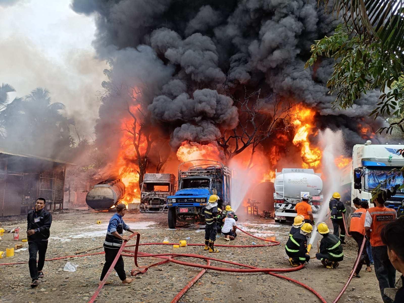 ဖြစ်စဉ်မှာ ရွှေစက်ရပ်ကွက်၊ နယ်မြေ (၁)၊ အိမ်အမှတ် (၄၁)၊ ဦးမြင့်ဇော်ပိုင်ဆိုင်သော ခြံဝင်းတွင် ဌာရမ်းလုပ်ကိုင်သူသည် ခြံဝင်းအတွင်းရှိ ဓာတ်ဆီဘောက်ဆာတွဲကားမှ အခြားဆီတိုင်ကီအတွင်းသို့ စက်ဖြင့်ဆီလှယ်ရာ ပိုက်ဆက်ပြုတ်၍ မီးစတင်ကူးစက်လောင်ကျွမ်းခဲ့မှုကြောင်း တွဲကားဘောက်ဆာ (၁) စီး၊ ဓာတ်ဆီပေပါ (၁၂) လုံး၊ (၃၀ x၃၀) ပေရှိ သွပ်မိုး၊ အုပ်ညှပ်၊ မြေစိုက် (၁) ထပ်နှင့်(၃၀ x၂၀)ပေရှိ သွပ်မိုး၊ အထပ်သားကာ၊ မြေစိုက် (၁)ထပ် စုစုပေါင်းအဆောက်အဦ (၂)လုံး၊ စုစုပေါင်းမီးလောင်ဆုံးရှုံး မှု တန်းဖိုးငွေကျပ် (၄၅၀၀၀၀၀၀) ခန့်ရှိကြောင်းနှင့် မီးလောင်မှုကြောင့် လူနှင့် တိရစ္ဆာန်များ ထိခိုက်ဒဏ်ရာရရှိမှု/ သေဆုံးမှုမရှိကြောင်း ပြည်နယ်မီးသတ်ဦးစီးမှူးရုံးမှ သိရသည်။