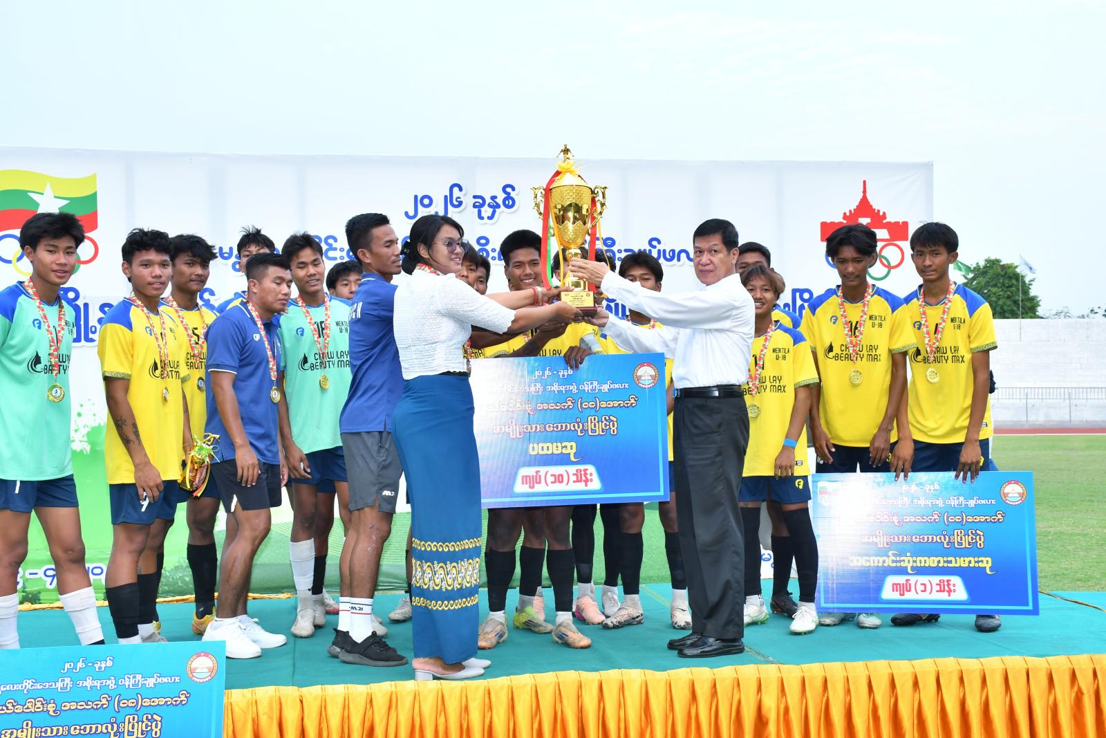 ထို့နောက်တိုင်းဒေသကြီးဝန်ကြီးချုပ်က ပထမဆုရရှိသည့် မိတ္ထီလာမြို့နယ်အသင်းအား တံခွန်စိုက်ဆုဖလားနှင့် ဂုဏ်ပြုဆုငွေတို့ကို ချီးမြှင့်ပေးကြောင်း သိရသည်။