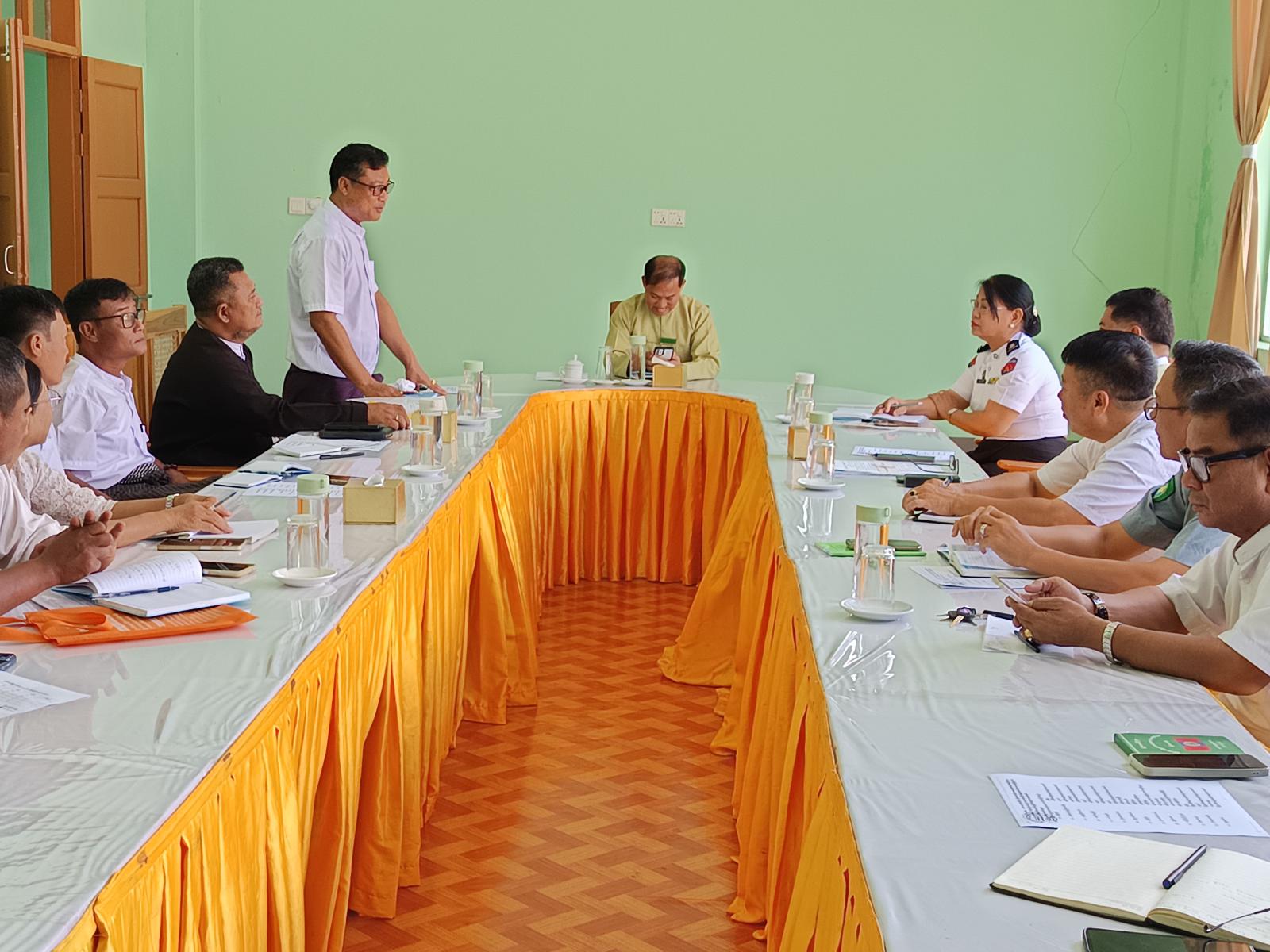 ဆက်လက်၍ မြန်အောင်ခရိုင် စီမံခန့်ခွဲရေးနှင့်အုပ်ချုပ်ရေးကော်မတီအဖွဲ့ဝင် ဦးတင်အောင်ဝင်း၊ မြို့နယ်စီမံခန့်ခွဲရေးနှင့်အုပ်ချုပ်ရေးကော်မတီဥက္ကဋ္ဌ ဦးနေမင်းထွန်း၊ ခရိုင်/မြို့နယ်အဆင့် ဌာနဆိုင်ရာအကြီးအကဲများ၊ မြန်မာ့ရိုးရာနှစ်သစ်ကူး အတာသင်္ကြန်ပွဲတော်နှင့် လမ်းလျှောက် သင်္ကြန်ပွဲတော်ကို မြန်မာ့ရိုးရာအစဉ်အလာနှင့်အညီ စည်ကားသိုက်မြိုက်စွာကျင်းပရေး ဦးစီးကော်မတီများ၊ လုပ်ငန်းကော်မတီများက ကော်မတီအလိုက် ကြိုတင်ပြင်ဆင် ဆောင်ရွက်ထားရှိမှုများကို ရှင်းလင်းတင်ပြကြသည်။ ။
