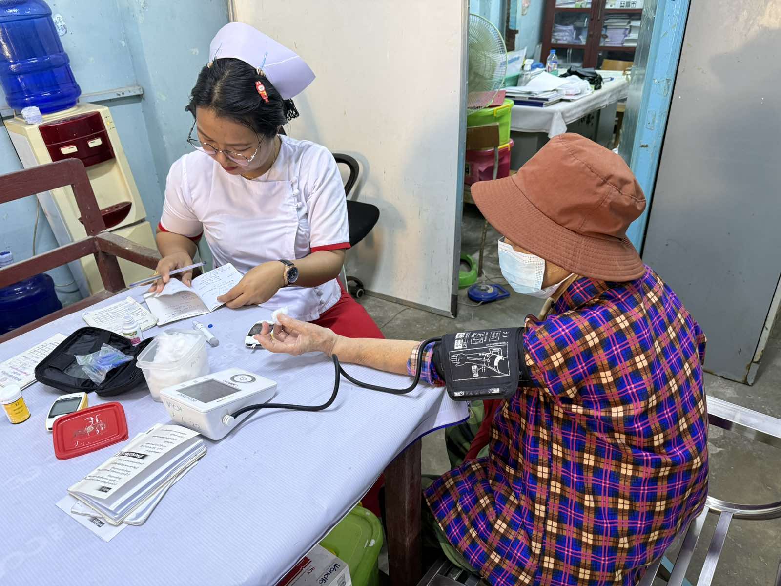 ရန်ကုန်တိုင်းဒေသကြီး၊ လသာမြို့နယ်၊ ပြည်သူ့ကျန်းမာရေးဦးစီးဌာန၌ အပတ်စဉ် ကျန်းမာရေးစောင့်ရှောက်မှုလုပ်ငန်းများကို ယမန်နေ့နံနက် ၁၀ နာရီက သွေးတိုးနှင့် ဆီးချိုရောဂါ ခံစားနေရသောလူနာများအား ဆရာဝန်များမှ စနစ်တကျစစ်ဆေးကြည့်ရှု၍ လိုအပ်သည့်ကုသမှုများ ဆောင်ရွက်ပေးခဲ့သည်။