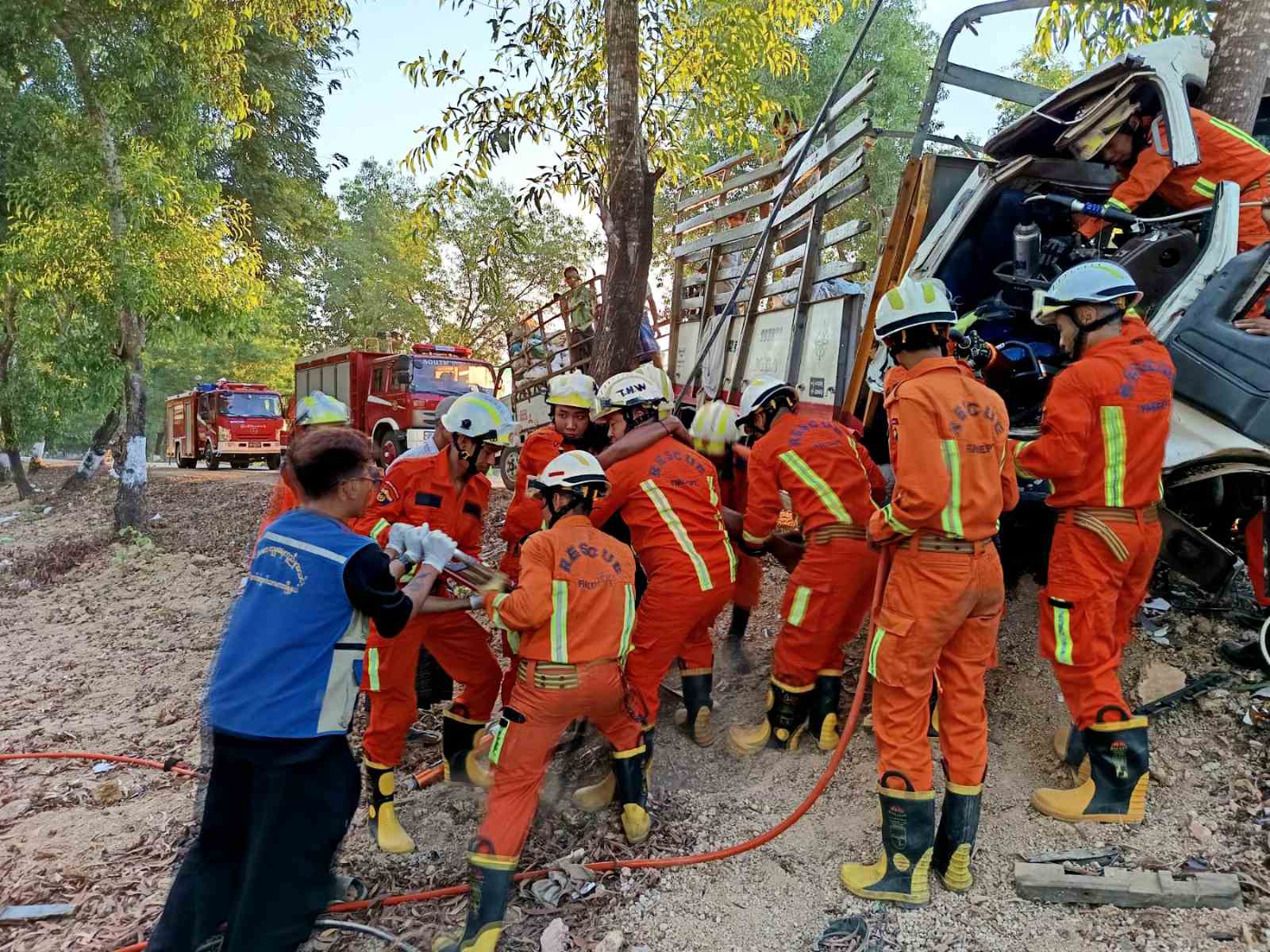 အဆိုပါ အလွမ်းဆွတ်ကျေးရွာ၊ ရေတပ်လမ်းမကြီးပေါ်တွင် ယာဉ်တိုက်မှုဖြစ်ပွားပြီး ယာဥ်မောင်းတစ်ဦး ညပ်နေကြောင်း သတင်းရသဖြင့် သန်လျင်မြို့နယ် မီးသတ်ဦးစီးမှူးရုံးမှ ဦးစီးအရာရှိ ဦးဇော်မျိုးဝင်းဦးဆောင်၍ မီးငြှိမ်းသတ်ယာဉ်(၁)စီး၊ သန်လျင်ခရိုင် မီးသတ်စခန်းမှ ဦးစီးအရာရှိ ဦးပြည့်ဖြိုးဟိန်း ဦးဆောင်၍ ရှာဖွေကယ်ဆယ်ရေးယာဉ် 191 (၁)စီးဖြင့် ထွက်ခွာရာ ရှာဖွေကယ်ဆယ်ရေးလုပ်ငန်းများ ဆောင်ရွက်ခဲ့ပြီး ညပ်နေသည့်လူနာ (မစိုးရိမ်ရ)အား ကယ်ဆယ်ရွှေ့ထုတ်နိုင်ခဲ့ကြောင်း မြို့နယ်မီးသတ်ဦးစီးဌာနမှ သိရသည်။