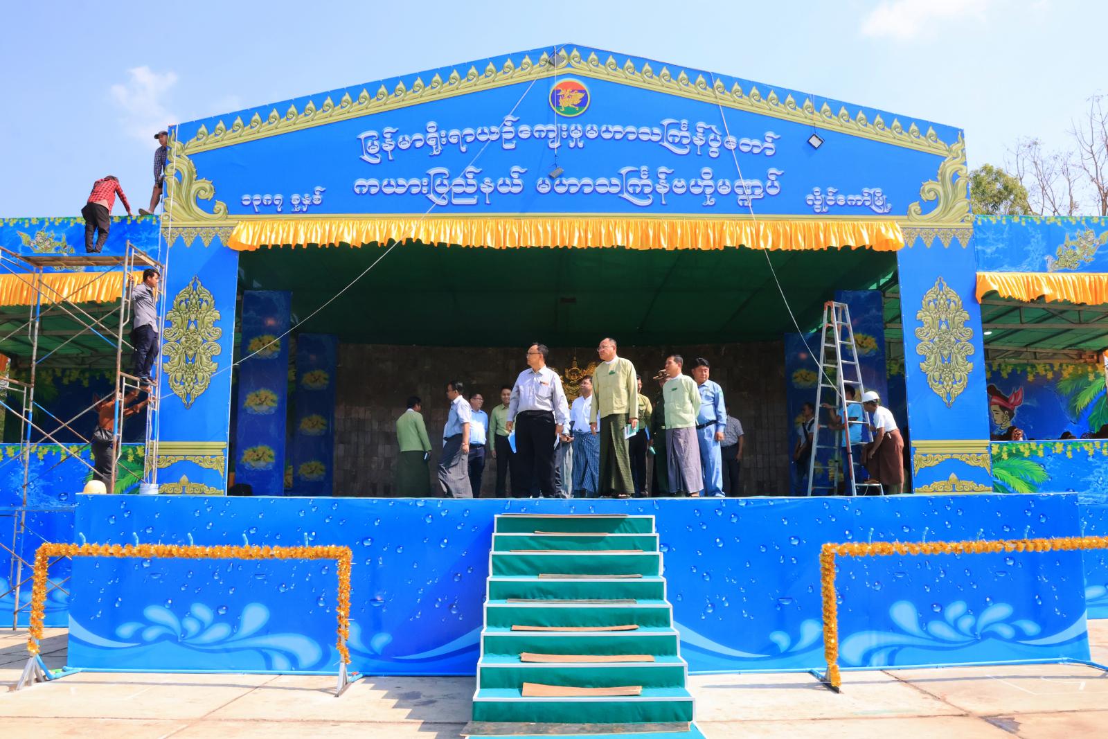 ထို့နောက် ပြည်နယ်ဝန်ကြီးချုပ်နှင့် တာဝန်ရှိသူများသည် လမ်းလျှောက်သင်္ကြန် ကျင်းပမည့်နေရာများနှင့် ပြင်ဆင်ဆောင်ရွက်ထားရှိမှုတို့အား လည်းကောင်း၊ ဗဟိုမဏ္ဍပ်နှင့် ရေကစားမဏ္ဍပ်များ ဆောက်လုပ်ပြီးစီးမှုအခြေအနေများကို ကြည့်ရှုစစ်ဆေးပြီး ပြည်နယ်ဝန်ကြီးချုပ်က မဟာသင်္ကြန်ပွဲတော်အား အနှစ်သာရရှိစွာဖြင့် စည်ကားသိုက်မြိုက်စွာ ကျင်းပနိုင်ရေး စနစ်တကျစီမံဆောင်ရွက်ရန်ဖြစ်ကြောင်း၊ ဗဟိုမဏ္ဍပ်နှင့် လမ်းလျှောက်သင်္ကြန်၌ သင်္ကြန်ကာလတွင် ရေလုံလောက်စွာရရှိရန်နှင့် လမ်းလျှောက်သင်္ကြန်တွင် ပြည်သူများ ပျော်ရွှင်ချမ်းမြေ့စွာ ပါဝင်ဆင်နွှဲနိုင်ရေး ဆောင်ရွက်ပေးရန်၊ ထမနဲသင်္ကြန်၊ သနပ်ခါးသင်္ကြန်နှင့် လက်ဖက်သင်္ကြန်များတွင် မြန်မာ့ရိုးရာယဉ်ကျေးမှု စရိုက်လက္ခဏာများ ပေါ်လွင်ထင်ဟပ်အောင် အလေးထားကြိုးပမ်းဆောင်ရွက်ကြရန် တာဝန်ရှိသူများကိုမှာကြားပြီး လိုအပ်သည်များ ပေါင်းစပ်ညှိနှိုင်းပေးခဲ့သည်။