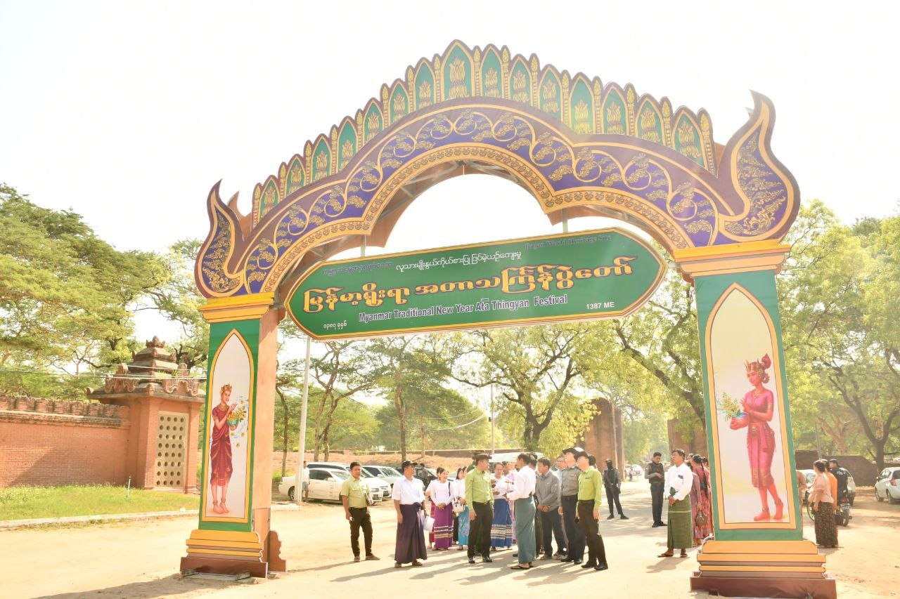 ၁၃၈၇ ခုနှစ်၊ မြန်မာ့ရိုးရာယဉ်ကျေးမှုသင်္ကြန်အား ပုဂံမြို့ဟောင်းအတွင်း လမ်းလျှောက်သင်္ကြန်နှင့်အတူ သနပ်ခါးမဏ္ဍပ်၊ စတုဒိသာမဏ္ဍပ်၊ ရေကစားမဏ္ဍပ်များ၊ ပုဂံအငွေ့အသက် မုခ်ဦးတည်ဆောက်ပြီးစီးမှု၊ ပုဂံမြို့ဟောင်းလမ်းတစ်လျှောက် ပုဂံထီး၊ ပုသိမ်ထီးများအလှဆင်ထားရှိပြီး၊ ဓာတ်ပုံ၊ ဗီဒီယိုအလှရိုက်ကူးနိုင်ရေး ပုဂံထီး၊ ပုသိမ်ထီးများ အလှဆင်ထားပြီး သင်္ကြန်လာရောက်သူများ အလှဓာတ်ပုံရိုက်ကူးနိုင်ရေး စီစဉ်ဆောင်ရွက်ထားရှိမှု၊ လက်ရေးအလှပန်းချီရေးဆွဲလိုသူများ လမ်းလျှောက်သင်္ကြန် ပါဝင်ဆင်နွှဲချိန် လက်အလှပန်းချီရေးဆွဲနိုင်ရေး စီစဉ်ဆောင်ရွက်ထားရှိမှု၊ ပုဂံချစ်လျှင် ဒီနေရာမှာခြစ်ပါ ဘုရားနံရံများ၊ နံရံပန်းချီများပေါ်မခြစ်ပါနှင့် အသိပညာပေး ဗီနိုင်းချိတ်ဆွဲထားမှု၊ ပုဂံလမ်းလျှောက်သင်္ကြန်နှင့်အတူ ပလတ်စတစ်သုံးဆွဲမှု ကင်းစင်ရေး၊ သောက်ရေသန့်ဘူးများ၊ တစ်ခါသုံးဖော့ဘူးများသုံးပြီးပါက အမှိုက်ပုံများအတွင်း စနစ်တကျစွန့်ပြစ်နိုင်ရေး စီစဉ်ဆောင်ရွက်ထားရှိမှု၊ Sound Box များ အသံထွက်တုန်ခါမှု သတ်မှတ်ချက်များဖြင့် အသံထွက်စေရေးစီစဉ်ဆောင်ရွက်ထားရှိမှုတို့အား ကွင်းဆင်းစစ်ဆေးရာ ရာခိုင်နှုန်းပြည့်ပြီးစီးနေပြီဖြစ်ကြောင်း သိရသည်။ မြန်မာ့ရိုးရာမဟာသင်္ကြန်ပွဲတော်ကို သံစုံတီးဝိုင်း (၆) ဝိုင်း၊ ယိမ်းအဖွဲ့ (၈) ဖွဲ့တို့ဖြင့် အလှည့်ကျဖျော်ဖြေသွားမည်ဖြစ်ကြောင်း၊ လမ်းလျှောက်သင်္ကြန်ပွဲတော်ကာလအတွင်း သရပါတံခါးမှဗူးဘုရားလမ်းထိပ်အထိ မော်တော်ယာဉ်၊ မော်တော်ဆိုင်ကယ်များ ဖြတ်သန်းသွားလာမှု ယာယီပိတ်ထားမည်ဖြစ်ကြောင်း သိရသည်။