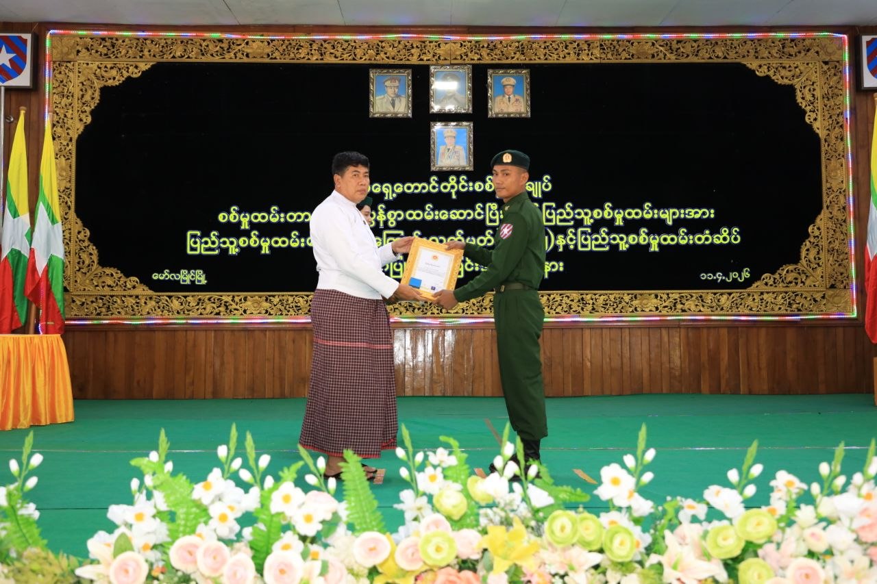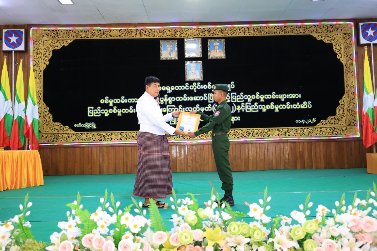 ထို့နောက် စစ်မှုထမ်းတာဝန်ကျေပွန်စွာ ထမ်းဆောင်ပြီးသည့် ပြည်သူ့စစ်မှုထမ်း စစ်သည်(၃)ဦးအတွက် ပြည်သူ့စစ်မှုထမ်းလက်မှတ်များအား မွန်ပြည်နယ်ဝန်ကြီးချုပ် က လည်းကောင်း၊ စစ်မှုထမ်းတာဝန်ကျေပွန်စွာ ထမ်းဆောင်ပြီးသည့် ပြည်သူ့စစ်မှုထမ်း စစ်သည်(၃)ဦးအတွက် ပြည်သူ့စစ်မှုထမ်းလက်မှတ်များအား မွန်ပြည်နယ် လုံခြုံရေးနှင့် နယ်စပ်ရေးရာဝန်ကြီးက လည်းကောင်း၊ စစ်မှုထမ်းတာဝန်ကျေပွန်စွာ ထမ်းဆောင်ပြီးသည့် ပြည်သူ့စစ်မှုထမ်း စစ်သည်(၃)ဦးအတွက် ပြည်သူ့စစ်မှုထမ်းလက်မှတ်များအား ကရင်ပြည်နယ် လုံခြုံရေးနှင့်နယ်စပ်ရေးရာဝန်ကြီးက လည်းကောင်း၊ စစ်မှုထမ်းတာဝန်ကျေပွန်စွာ ထမ်းဆောင်ပြီးသည့် ပြည်သူ့စစ်မှုထမ်း စစ်သည်(၃)ဦးအတွက် ရှေ့တောင်တိုင်းစစ်ဌာနချုပ် ဒုတိယတိုင်းမှူးတို့က လည်းကောင်း လက်မှတ်နှင့် ဆုတံဆိပ်များ ပေးအပ်ချီးမြှင့်ခဲ့ကြသည်။