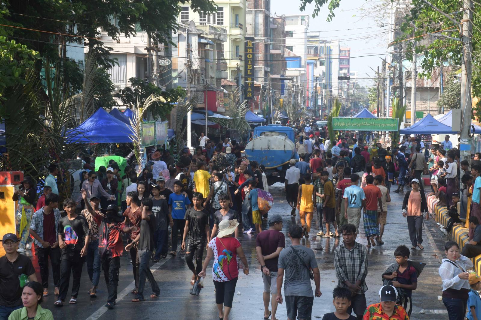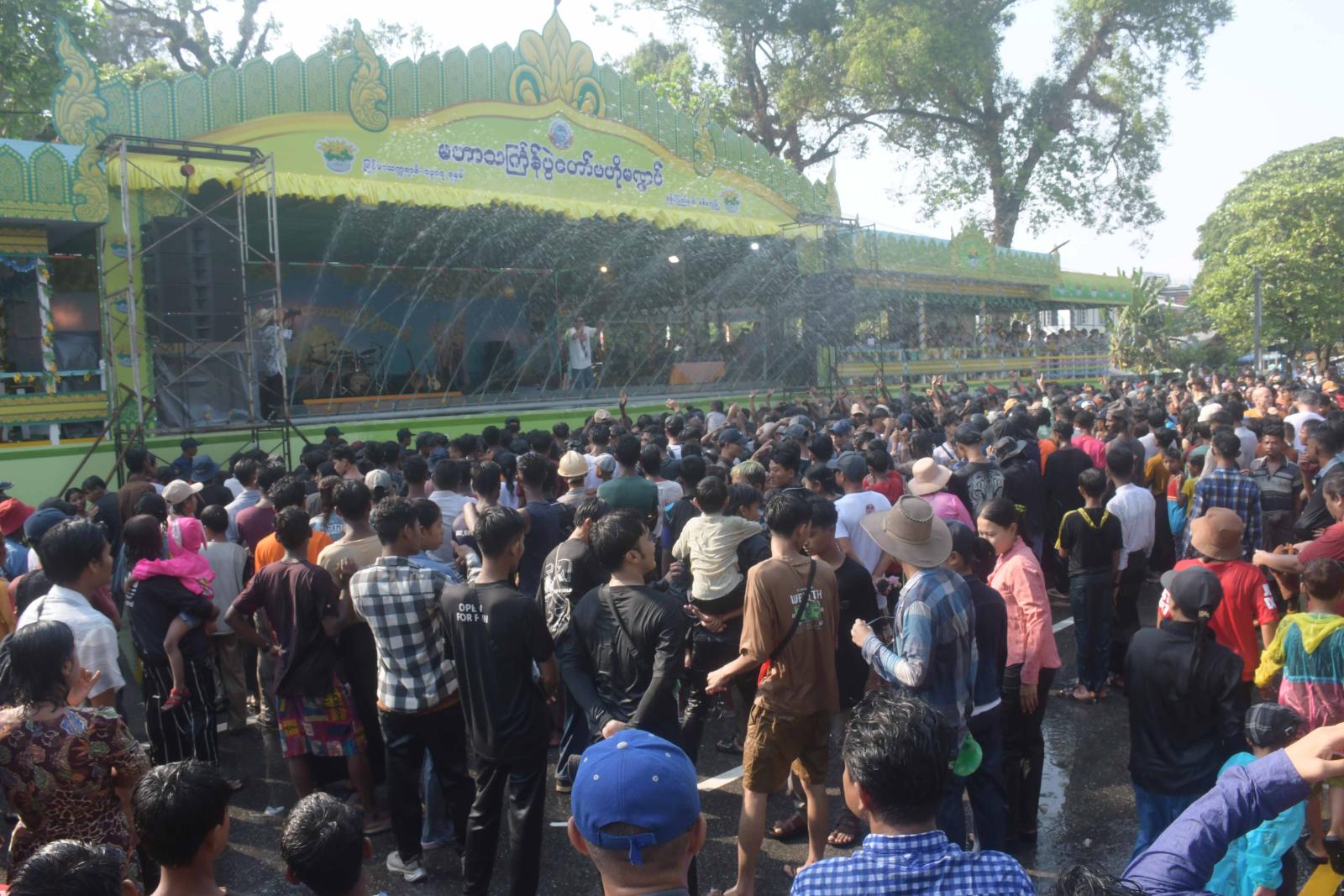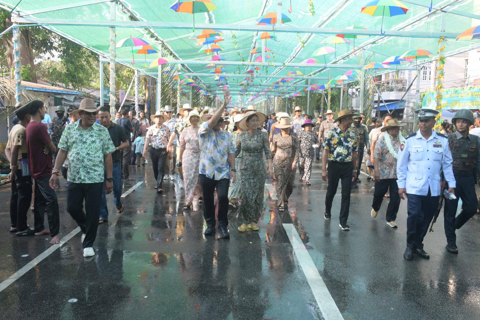 ညနေပိုင်းတွင် ရခိုင်ပြည်နယ်ဝန်ကြီးချုပ်နှင့်ဇနီး၊ ပြည်နယ်အစိုးရအဖွဲ့ဝင်များသည် ဗဟိုမဏ္ဍပ်သို့ သွားရောက်ပြီး သင်္ကြန်ယိမ်းအကအဖွဲ့များ၊ ရခိုင်အဆိုတော်များ၊ တေးသံရှင်များ၏ ကပြဖျော်ဖြေနေမှုကို ကြည့်ရှုအားပေးကြသည်။ ဆက်လက်၍ ပြည်နယ်ဝန်ကြီးချုပ်နှင့်ဇနီး၊ ပြည်နယ်အစိုးရအဖွဲ့ဝင်များသည် ရခိုင်ရိုးရာရေကစားမဏ္ဍပ်၌ ရခိုင်ရိုးရာစဉ်လာနှင့်အညီ လောင်းလှေများဖြင့် ရေကစားနေမှုကို ကြည့်ရှုအားပေးကြပြီး ယိမ်းအကအဖွဲ့များနှင့်အတူ ပါဝင်ရေကစားကြသည်။ ထို့ပြင် ပြည်နယ်ဝန်ကြီးချုပ်နှင့် အဖွဲ့သည် လမ်းမကြီးရှိ လမ်းလျှောက်သင်္ကြန်မဏ္ဍပ်သို့သွားရောက်ပြီး ပြည်သူများနှင့်အတူ သင်္ကြန်ပွဲတော်ကို ပျော်ပျော်ရွှင်ရွှင်ပါဝင်ဆင်နွှဲခဲ့ကြောင်း သိရသည်။
