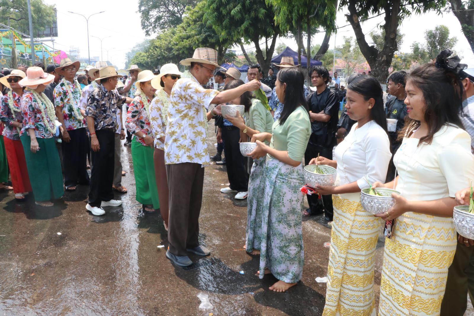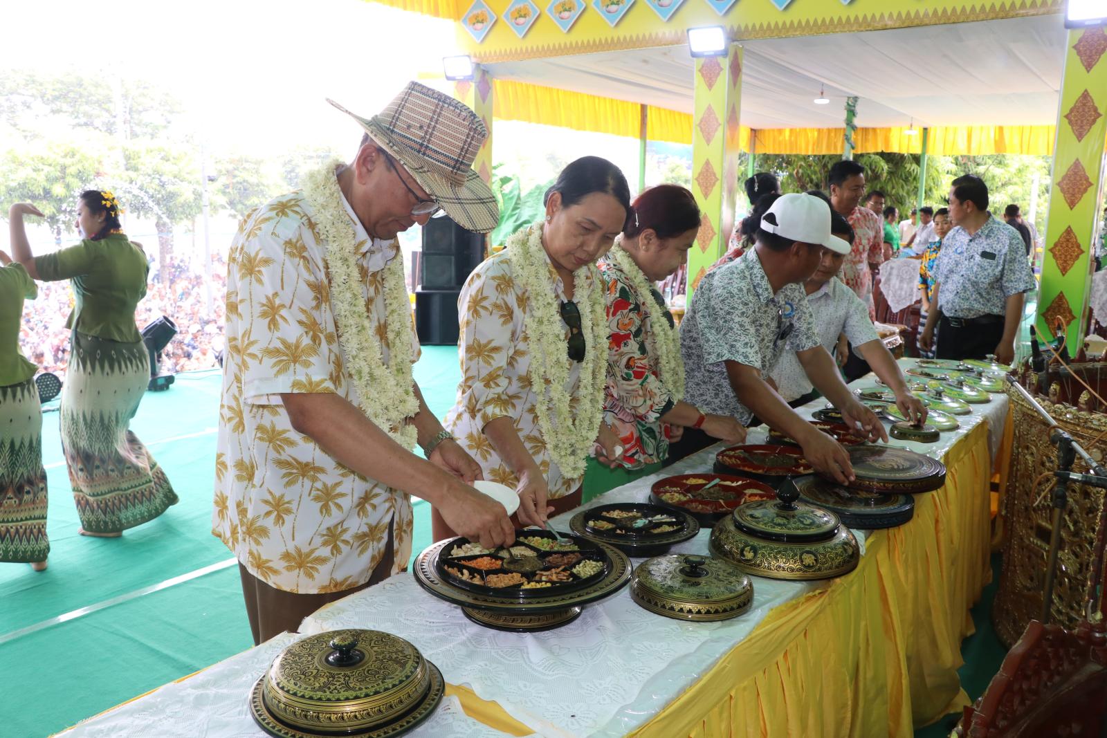 ဦးစွာ တာဝန်ရှိသူများက လမ်းလျှောက်သင်္ကြန်ပြုလုပ်လျက်ရှိသည့် ရွှေသလ္လာနှစ်သစ်မဏ္ဍပ်၊ ရွှေပိတောက်ပျိုမေမဏ္ဍပ်၊ လျှပ်စစ်/ စွမ်းအင်/ လမ်းပန်းဆက်သွယ်ရေးမဏ္ဍပ်၊ ချင်းတွင်းပိတောက်မဏ္ဍပ်နှင့် ဗဟိုမဏ္ဍပ်များသို့ သွားရောက်၍ ဌာနဆိုင်ရာမဏ္ဍက်များရှိ ယိမ်းလှပျိုဖြူလေးများနှင့် နိုင်ငံကျော်အဆိုတော်များ၏ တေးသီချင်းများဖြင့် သီဆိုကပြဖျော်ဖြေမှု မြို့နေပြည်သူများ တစ်ပျော်တစ်ပါး ပါဝင်ဆင်နွှဲနေမှုများအား သွားရောက်ကြည့်ရှုအားပေးခဲ့ကြပြီး ဂုဏ်ပြုချီးမြှင့်ငွေများ ပေးအပ်ကာ မုံရွာမြို့၊ MSME လုပ်ငန်း ဒေသထွက်ကုန် တစ်ခုဖြစ်သည့် “ပွဲတော်အုပ်” လက်ဖက်နှင့် နှစ်ပြန်ကျော် စားသောက် ဖွယ်ရာများ ခင်းကျင်းပြသထားရှိမှုများအား ကြည့်ရှုခဲ့ကြပြီး တာဝန်ရှိသူများနှင့် အတူတကွ သုံးဆောင်ခဲ့ကြသည်။