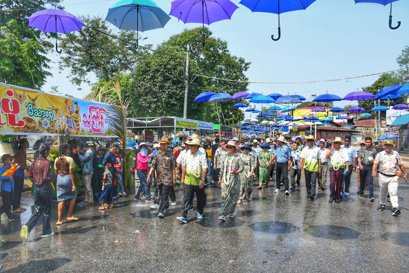 မြန်မာ့ရိုးရာယဉ်ကျေးမှု လမ်းလျှောက်မဟာသင်္ကြန်ပွဲတော်ကို အေးချမ်းကြည်နူးစွာဖြင့် တစ်ဦးနှင့် တစ်ဦး သပြေခက်ဖြင့် ရေပက်ခြင်းများ၊ ရေလောင်းခြင်းများ၊ စတုဒိသာအကျွေးအမွေးများနှင့် မြန်မာ့ရိုးရာ သနပ်ခါး သရုပ်ပြလိမ်းခြယ်ခြင်းများအား မြန်မာ့ဓလေ့ထုံးတမ်း အစဉ်အလာများနှင့် အညီ မြန်မာ့ရိုးရာ အတာရေသဘင်ပွဲကျင်းပနေမှုအား နေပြည်တော်ကောင်စီဥက္ကဋ္ဌ ဦးကံမြင့်သန်းနှင့်ဇနီး၊ နေပြည်တော် ကောင်စီဝင်များနှင့် ၎င်းတို့၏ဇနီးများ၊ ဌာနဆိုင်ရာ အကြီးအကဲများ သွားရောက်၍ ကြည့်ရှုအားပေးခဲ့ပြီး မြန်မာ့ရိုးရာယဉ်ကျေးမှု ဗဟိုမဏ္ဍပ်နှင့် လမ်းလျှောက်မဟာသင်္ကြန်ပွဲတော် ပါဝင်ဆင်နွှဲကြသူများအား မြန်မာ့ရိုးရာအစဉ်အလာနှင့်အညီ သပြေခက်ဖြင့် သင်္ကြန်ရေအေး ပက်ဖျန်းပေးကာ ဗဟိုမဏ္ဍပ်များတွင် ယိမ်းအဖွဲ့၏ ကပြဖျော်ဖြေတင်ဆက်မှုကို ကြည့်ရှုအားပေးပြီး ယိမ်းအဖွဲ့များအား ဂုဏ်ပြုချီးမြှင့်ငွေများ ပေးအပ်ခဲ့ပြီး နေပြည်တော်အတွင်းရှိ ကျန်ရှိသည့်မြို့နယ်များတွင်လည်း မဟာသင်္ကြန်ပွဲတော်ကို အလားတူ အေးချမ်းပျော်ရွှင်စွာ ဆင်နွှဲလျက်ရှိကြောင်း သိရသည်။