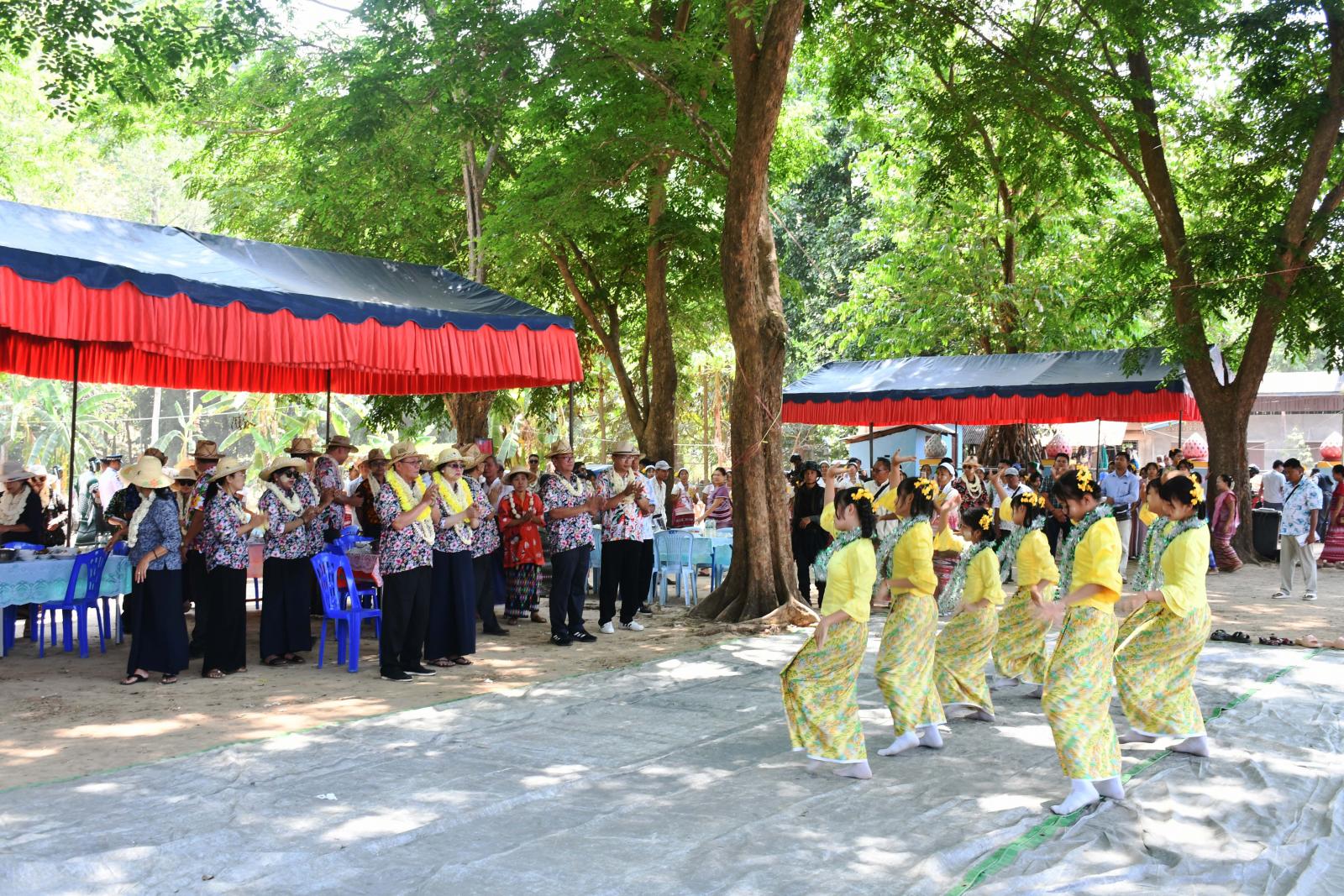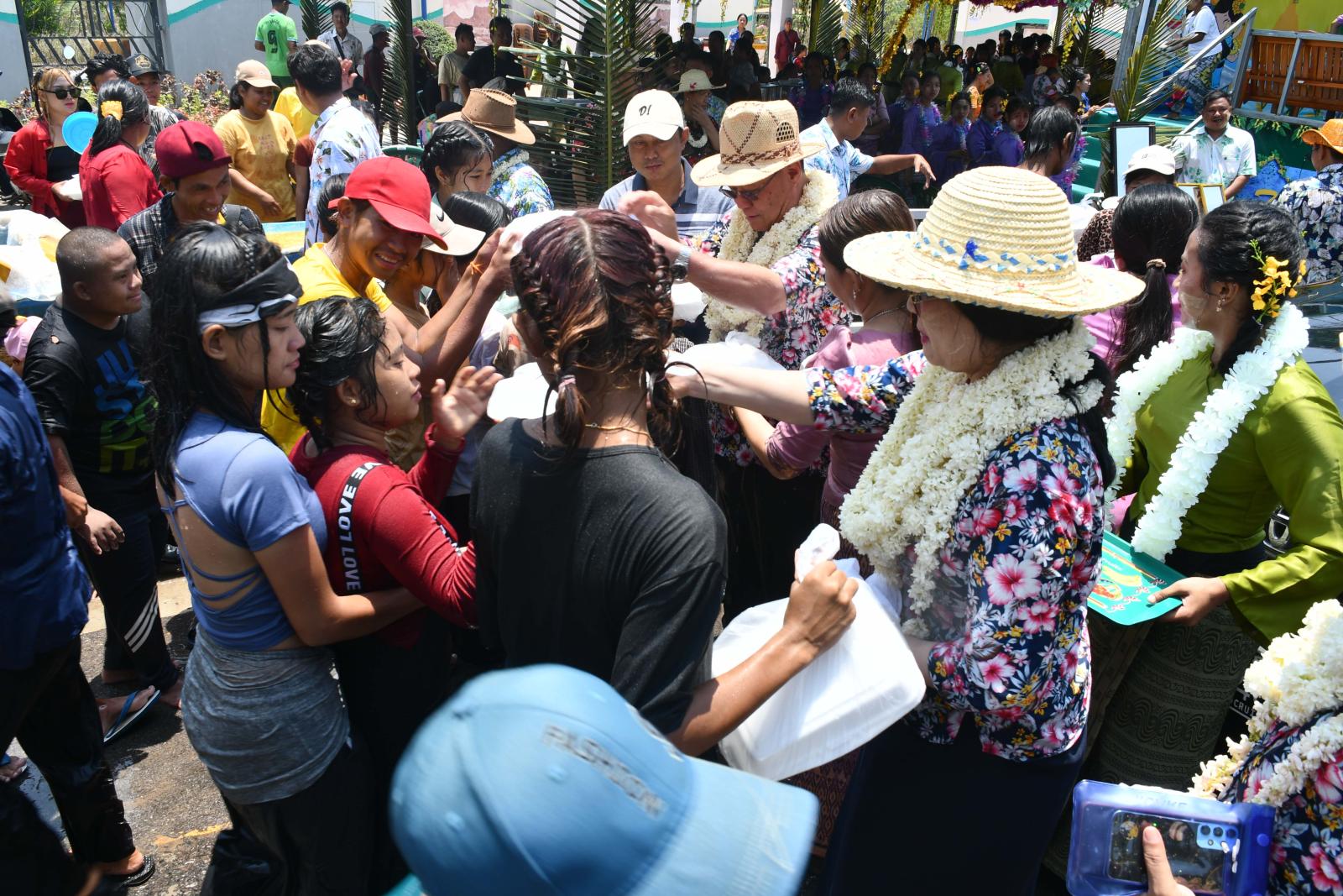 အလားတူ ပြည်နယ်ဝန်ကြီးချုပ်နှင့်အဖွဲ့သည် အဆိုပါရေကစားမဏ္ဍပ်များနှင့်ဖျော်ဖြေရေးမဏ္ဍပ်များတွင် ရေကစားကြသူများ၊ ရေပက်ခံထွက်ကြသူများအား အတာရေအေးပက်ဖြန်းပေး၍ စတုဒိသာအဖြစ်တည်ခင်းဧည့်ခံသော သင်္ကြန်ထမင်း၊ မုန့်လုံးရေပေါ်၊ မုန့်လက်ဆောင်း၊ ရွှေယဉ်အေး အစရှိသော သင်္ကြန်စာများကို သုံဆောင်ကြကာ ရေပက်ရေကစားကြသူများအားဝေငှပေး၍ မဟာသင်္ကြန်ပွဲတော်ကို အေးချမ်းပျော်ရွှင်စွာပါဝင်ဆင်နွှဲခဲ့ကြသည်။