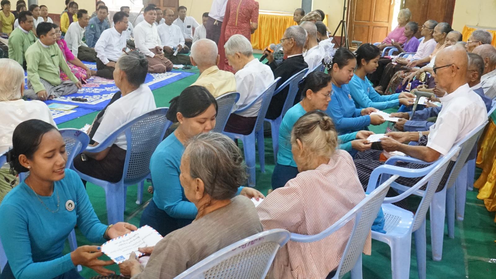 အခမ်းအနားတွင် ပူဇော်ခံကြွရောက်လာကြသည့် သက်ကြီးဘိုးဘွား (၂၅) ဦးအား ကန်တော့ကျိုးဖြင့် ပူဇော်ကန်တော့ကြပြီးအလှူငွေနှင့် လှူဖွယ်ပစ္စည်းများအား မြို့နယ်စီမံခန့်ခွဲရေးနှင့် အုပ်ချုပ်ရေးကော်မတီဥက္ကဋ္ဌ ဦးခင်မောင်ဦးနှင့် အဖွဲ့ဝင်များ၊ ပြည်သူ့လွှတ်တော်ကိုယ်စားလှယ် ဦးခင်မောင်ဝင်း၊ တိုင်းဒေသကြီးလွှတ်တော်ကိုယ်စားလှယ် ဦးအောင်ဇော်လှိုင်၊ ဌာနဆိုင်ရာအကြီးအကဲများနှင့် မိခင်နှင့်ကလေး စောင့်ရှောက်ရေးအသင်း အဖွဲ့များ၊ အမျိုးသမီးရေးအဖွဲ့ဝင်များက လှူဒါန်းခဲ့ကြပြီးနောက် ဘိုးဘွားများကိုယ်စား ဘိုးဘွားတစ်ဦးမှလည်း နှစ်သစ်ဆုတောင်းစကားပြောကြား၍ ဆုတောင်းမေတ္တာများ ပြန်လည်ပို့သပေးခဲ့ပြီး တက်ရောက်လာသူများမှ ဗုဒ္ဓသာသနံ စိရံတိဌတု သုံးကြိမ်ရွတ်ဆို၍ အခမ်းအနားအားရုပ်သိမ်းခဲ့ကြောင်း သိရသည်။