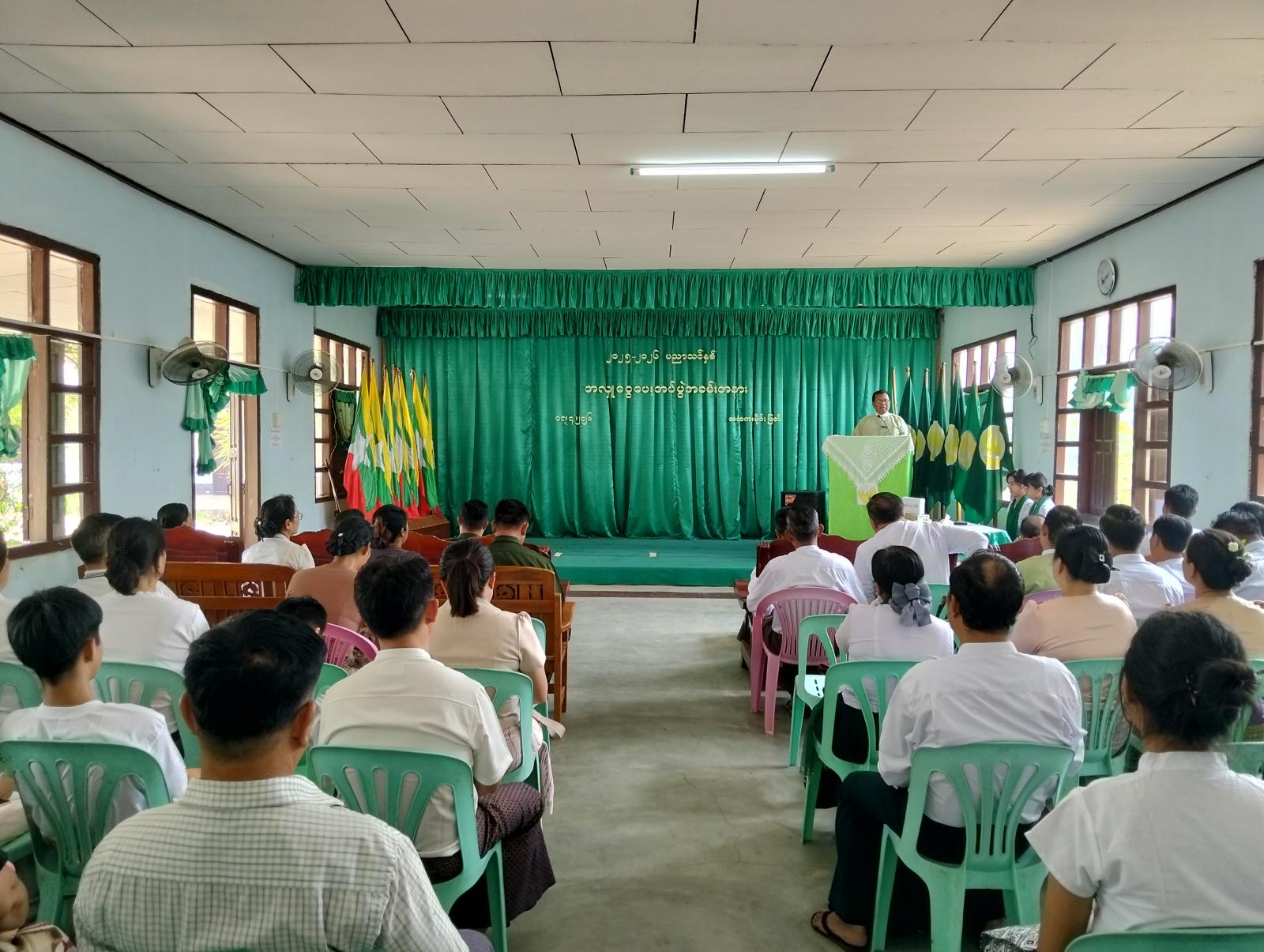 ရှေးဦးစွာ မြို့နယ်စီမံခန့်ခွဲရေးနှင့်အုပ်ချုပ်ရေးကော်မတီဥက္ကဋ္ဌ ဦးလှမျိုးက အမှာစကား ပြောကြားခဲ့သည်။ ထို့နောက် အလှူရှင်ကျောင်းအကျိုးတော်ဆောင် ဂုဏ်ထူးဆောင်နာယက သုဓမ္မမဏိဇောတဓရ ဦးထွန်းရွှေက အလှူငွေများပေးအပ်ရခြင်းနှင့်စပ်လျဉ်း၍ အမှာစကားများ ပြောကြားခဲ့သည်။ ယင်းနောက် ကျောင်းအုပ်ဆရာမကြီး ဒေါ်အမာကြည်က ကျေးဇူးတင်စကားများ ပြန်လည်ပြောကြားခဲ့သည်။