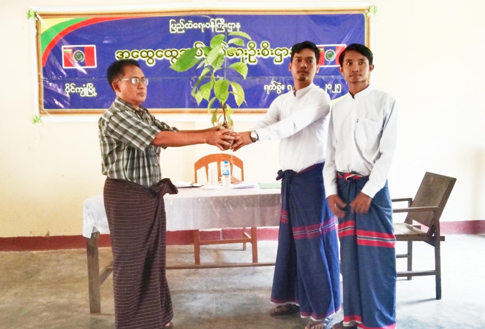 အခမ်းအနားတွင် မြို့အုပ်ချုပ်ရေးမှူးက ကော်ဖီစိုက်ပျိုးခြင်း၏ ရည်ရွယ်ချက်၊ ကော်ဖီစိုက်ပျိုးခြင်းကြောင့် ရရှိလာမည့်အကျိုးကျေးဇူးများ၊ ဖြန့်ဝေသည့် ပျိုးပင်များအားရှင်သန်စေရေးနှင့် စိုက်ပျိုးဧကပြည့်မီပြီး စိုက်ပျိုးထုတ်လုပ်မှုတိုးတက်ရေးအတွက် တောင်သူများအနေဖြင့် သက်ဆိုင်ရာဌာနနှင့် ပူးပေါင်းဆောင်ရွက်ရန်လိုအပ်ကြောင်း အမှာစကားပြောကြားပြီး မြို့စိုက်ပျိုးရေးဦးစီးဌာနမှ မြို့ဉီးစီးမှူးက ကော်ဖီပျိုးပင်များပေးအပ်ရခြင်း၏ ရည်ရွယ်ချက်နှင့်ပျိုးပင်များ စိုက်ပျိုးသည့်ကာလတွင် စိုက်ပျိုးရန်လိုအပ်ကြောင်း ထပ်ဆင့်အမှာစကားပြောကြားသည်။ ထို့နောက် တာဝန်ရှိသူများတို့က ကော်ဖီစိုက်ပျိုးမည့်တောင်သူများထံ ပျိုးပင်များ လက်ဝယ်အရောက် ထောက်ပံ့ပေးအပ်သည်။