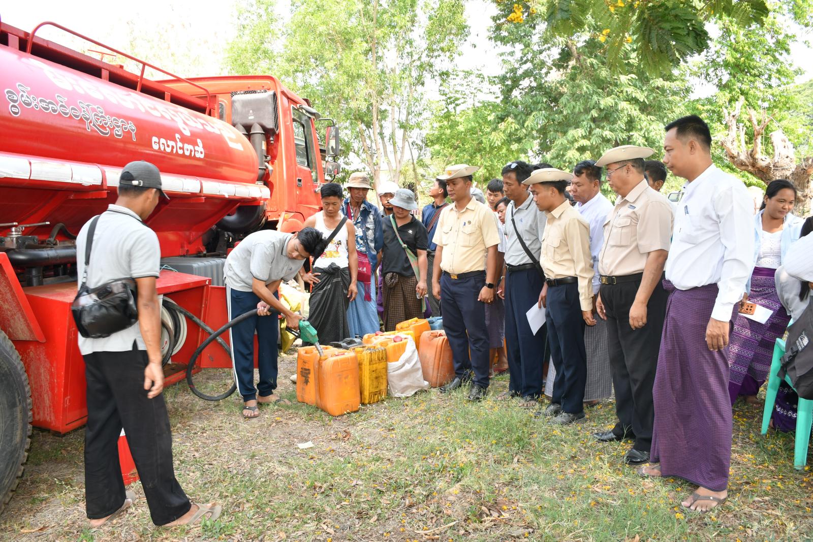 လျှပ်စစ်နှင့်စွမ်းအင်ဝန်ကြီးဌာနနှင့် စိုက်ပျိုးရေး၊ မွေးမြူရေးနှင့်ဆည်မြောင်းဝန်ကြီးဌာနတို့ပူးပေါင်း၍ နွေစပါးစိုက်ပျိုးဧကပြည့်မီရေး စက်သုံးဆီများသက်သာသောစျေးနှုန်းဖြင့်ရောင်းချပေးလျက်ရှိရာ ပြည်ထောင်စုနယ်မြေ၊ နေပြည်တော် တပ်ကုန်းမြို့နယ်တွင် ရေနံထွက်ပစ္စည်းကြီးကြပ်စစ်ဆေးရေးဦးစီးဌာနမှ လက်ထောက်ညွှန်ကြားရေးမှူး ဦးချိုဝင်း၊ မြို့နယ်အထွေထွေအုပ်ချုပ်ရေးဦးစီးဌာနမှ ဒုတိယဦးစီးမှူး ဦးအောင်မြင့်မိုး၊ မြို့နယ်စိုက်ပျိုးရေးဦးစီးဌာနမှ ဦးစီးအရာရှိ ဦးအေးမင်းထွန်းနှင့်ဝန်ထမ်းများ ကြီးကြပ်ကာ ယနေ့ နံနက်ပိုင်းက ကျားသေအိုင်ကျေးရွာအုပ်စု၊ ညောင်လွန့်ကျေးရွာအုပ်စုများရှိ စိုက်ပျိုးစီးပွားအသိပညာပေးစင်တာ(KC) ခန်းမများတွင် စက်သုံးဆီများ ရောင်းချပေးခဲ့သည်။