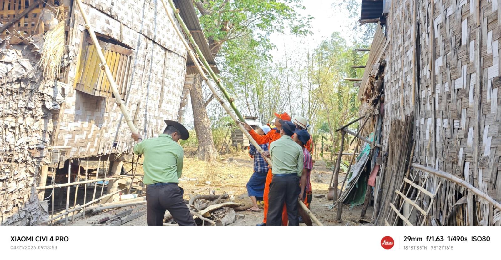 ထို့သို့ ဆောင်ရွက်ပေးရာတွင် မြို့နယ်စီမံခန့်ခွဲရေးနှင့်အုပ်ချုပ်ရေးကော်မတီဥက္ကဋ္ဌ ဦးယဥ်ထွေး၊ သက်ဆိုင်ရာမြို့အုပ်ချုပ်ရေးမှူးများ၊ မြို့နယ်မီးသတ်ဦးစီးဌာနမှ ဦးစီးအရာရှိ ဦးကျော်မင်းထိုက်နှင့် မီးသတ်တပ်ဖွဲ့ဝင်များ၊ ကျေးရွာအုပ်စု အုပ်ချုပ်ရေးမှူးများက မိုးရွာသွန်း၍ လေပြင်းတိုက်ခတ်မှုကြောင့် ကျွဲခေါင်းကျေးရွာ၊ သီးကုန်းကျေးရွာ၊ သာပေါင်းကျေးရွာ၊ ရပ်သာကျေးရွာ၊ ကြို့ကုန်းကျေးရွာများမှ ထိခိုက်ပျက်စီးဆုံးရှုံးခဲ့သော နေအိမ် (၁၅) လုံးအား အချိန်မီပြန်လည်ပြုပြင်နိုင်ရေး ကူညီဆောင်ရွက်ပေးလျက်ရှိကြောင်း သိရသည်။