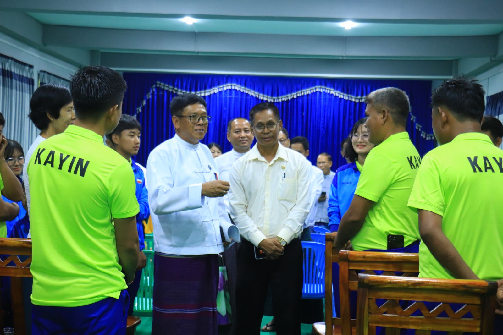 ကရင်ပြည်နယ်အတွင်းရှိ လူငယ်များ ဗလငါးတန်ဖွံ့ဖြိုးတိုးတက်စေရေးနှင့် အားစားကဏ္ဍဖွံ့ဖြိုးတိုးတက်စေရေးအတွက် ပြည်နယ်နှင့် တိုင်းဒေသကြီး စစ်တုရင်ပြိုင်ပွဲသို့ သွားရောက်ယှဉ်ပြိုင်မည့် ကရင်ပြည်နယ်စစ်တုရင်အသင်းအား တွေ့ဆုံမှာကြားခြင်းအခမ်းအနာကို ယမန်နေ့ ညနေပိုင်းက ပြည်နယ်လူငယ်စင်တာ၌ ကျင်းပပြုလုပ်သည်။