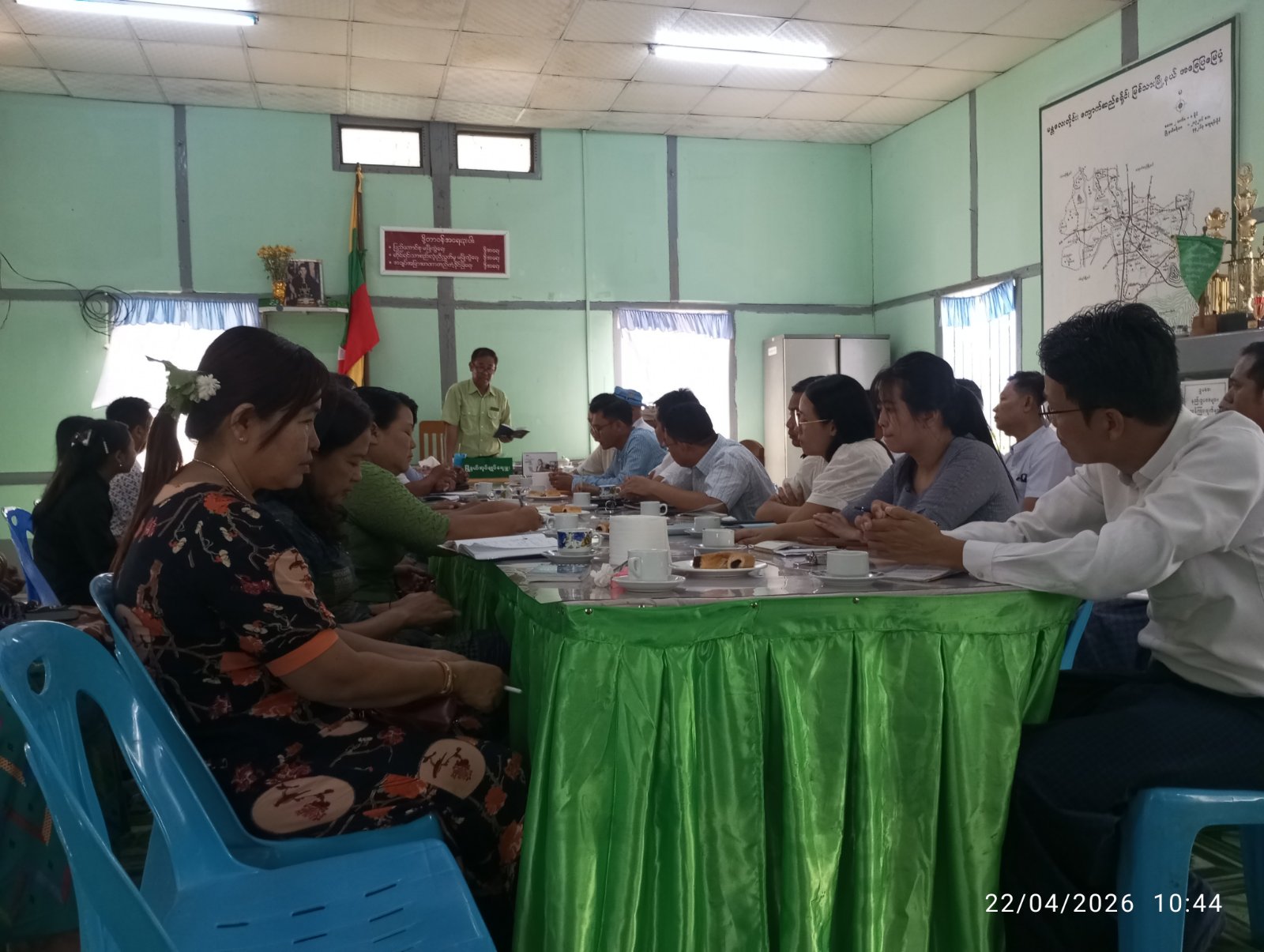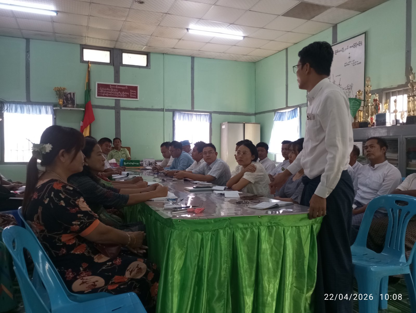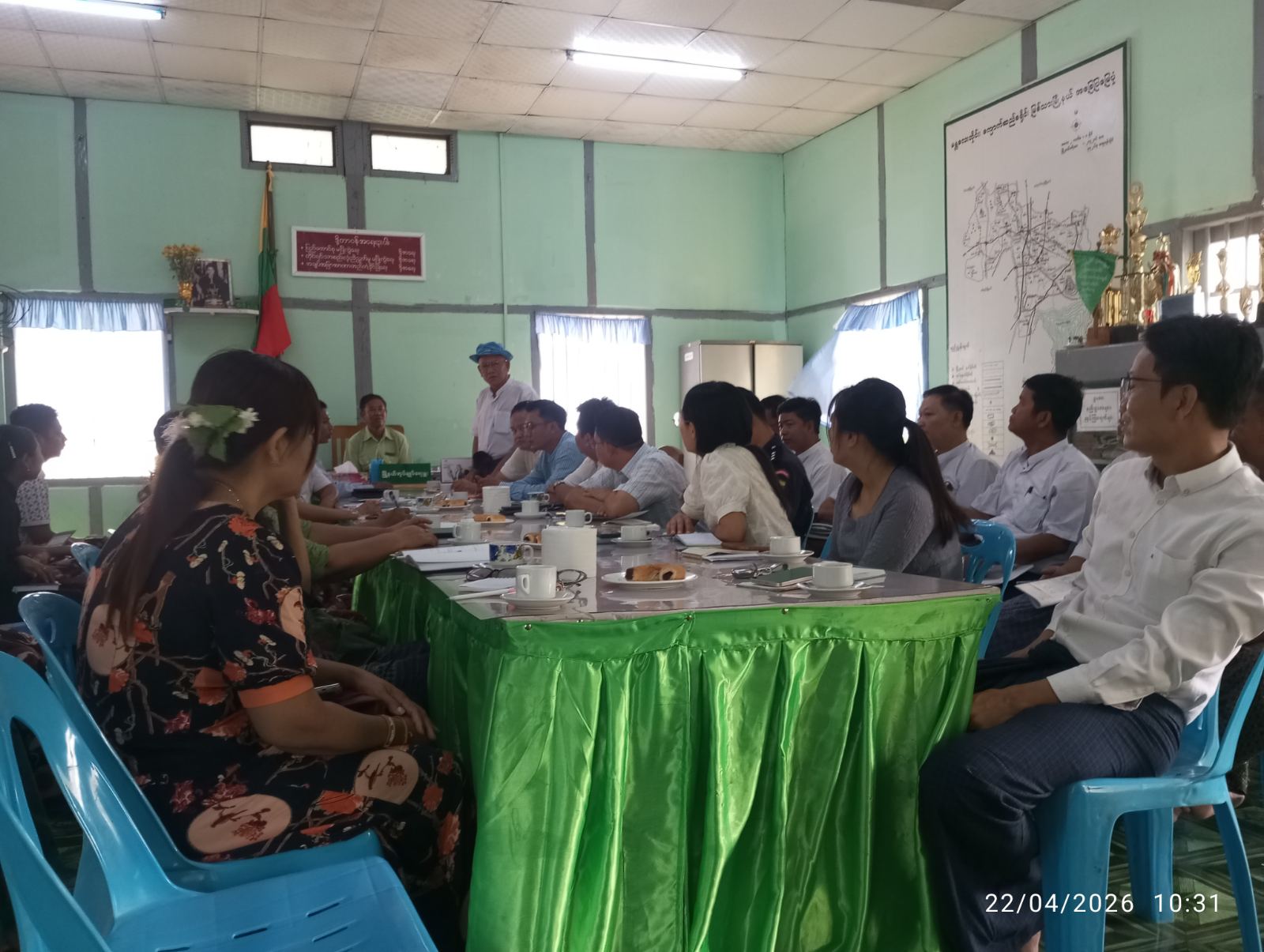 မန္တလေးတိုင်းဒေသကြီး၊ကျောက်ဆည်ခရိုင်၊ မြစ်သားမြို့နယ်တွင် မြို့နယ်စီမံခန့်ခွဲရေးနှင့်အုပ်ချုပ်ရေးကော်မတီဥက္ကဋ္ဌ ဦးမင်းအောင်နှင့်အဖွဲ့ဝင်များ၊ မြို့နယ်အဆင့်ဌာနဆိုင်ရာ အကြီးအကဲများသည် အစိုးရသစ်၏ ရက် ၁၀၀ စီမံချက်နှင့်ပတ်သက်၍ လုပ်ငန်းညှိနှိုင်း အစည်း အဝေးကို ဧပြီ ၂၂ ရက် နံနက် ၁၀ နာရီက မြို့နယ်အထွေထွေအုပ်ချုပ်ရေး ဦးစီးဌာနရုံး အစည်းအဝေးခန်းမ၌ ကျင်းပပြုလုပ်ခဲ့သည်။