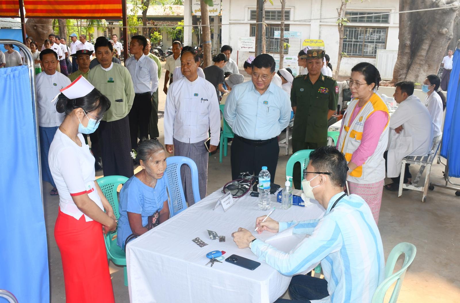 နေပြည်တော်ကောင်စီဥက္ကဋ္ဌ ဦးကံမြင့်သန်းသည် ယမန်နေ့နံနက်ပိုင်းက နေပြည်တော်ကောင်စီဝင်များ၊ တာဝန်ရှိသူများနှင့်အတူ ပျဉ်းမနားမြို့၊ မြန်မာ့စီးပွားရေးဘဏ်သို့ သွားရောက်ပြီး ပင်စင်လစာ လာရောက်ထုတ်ယူကြသည့် အငြိမ်းစားနိုင်ငံ့ဝန်ထမ်းများအား ခုတင် - ၂၀၀ ဆံ့ ပြည်သူ့ဆေးရုံကြီး ပျဉ်းမနားမြို့မှ အထူးကုဆရာဝန်ကြီးမျာက ကျန်းမာရေးအခမဲ့စောင့်ရှောက်ပေးနေမှုနှင့် အငြိမ်းစား ပင်စင်လစာ ထုတ်ပေးနေမှုအခြေအနေများကို ကြည့်ရှုအားပေးပြီး တာဝန်ရှိသူများအား လိုအပ်သည်များကို လမ်းညွှန်မှာကြားကာ အငြိမ်းစားနိုင်ငံ့ဝန်ထမ်းများအား ရင်းရင်းနှီးနှီးတွေ့ဆုံ၍ အားပေးစကားပြောကြားကာ အခြေခံစားသောက်ကုန်များ ပေးအပ်ခဲ့သည်။