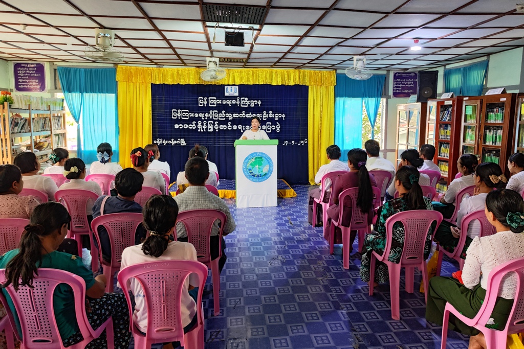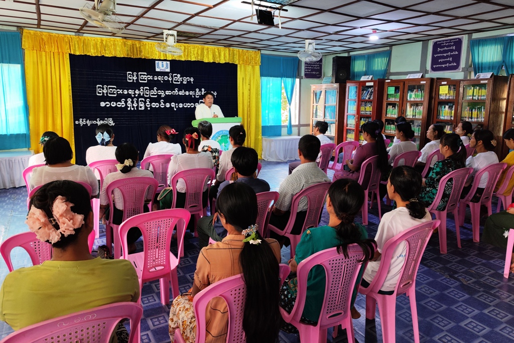 ဦးစွာ ဂန့်ဂေါခရိုင်ပြန်ကြားရေးနှင့်ပြည်သူ့ဆက်ဆံရေးဦးစီးဌာန၊ လက်ထောက်ညွှန်ကြားရေးမှူးဦးညီညီဇော်က စာဖတ်ရှိန်မြှင့်တင်ရေးဟောပြောပွဲကျင်းပရခြင်း၏ ရည်ရွယ်ချက်များကို ရှင်းလင်း ပြောကြားသည်။