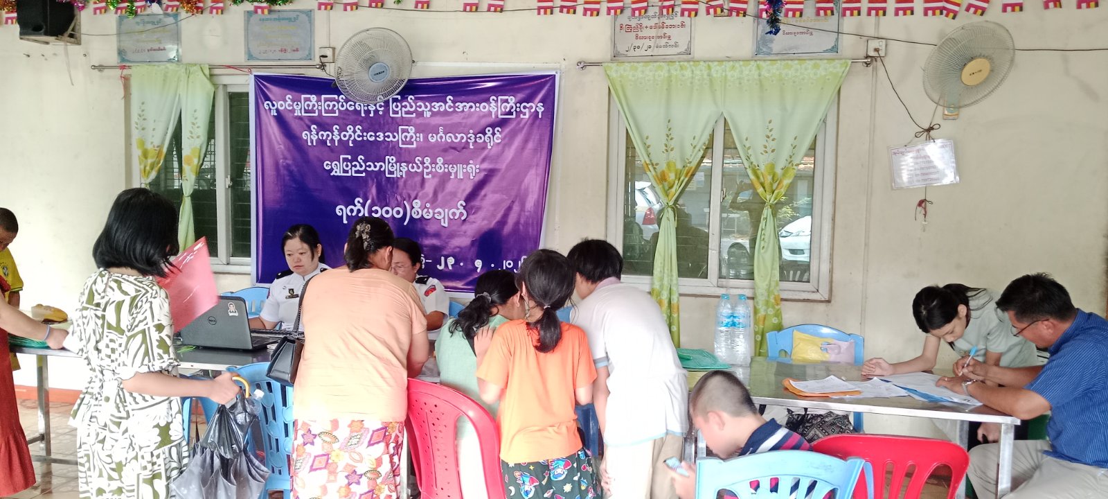 ရန်ကုန်တိုင်းဒေသကြီး၊ မင်္ဂလာဒုံခရိုင်၊ ရွှေပြည်သာမြို့နယ် လူဝင်မှုကြီးကြပ်ရေးနှင့် ပြည်သူ့အင်အားဝန်ကြီးဌာန မြို့နယ်ဦးစီးမှူး ဦးသောင်းမိုးနှင့် ဝန်ထမ်းများသည် ရွှေပြည်သာမြို့နယ်ရှိ အမှတ် (၂) ရပ်ကွက်၌ ရက် (၁၀၀) စီမံချက်ဖြင့် နိုင်ငံသားစိစစ်ရေးကတ်များကို ယမန်နေ့ နံနက်ပိုင်းမှစတင်၍ ကွင်းဆင်းပြုလုပ်ဆောင်ရွက်ပေးခဲ့ကြောင်း သိရသည်။