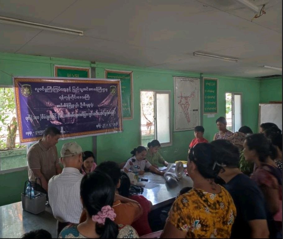 ရန်ကုန်တိုင်းဒေသကြီး၊ အင်းစိန်ခရိုင်၊ အင်းစိန်မြို့နယ်၊ ရွာမ (အရှေ့) ရပ်ကွက်အုပ်ချုပ်ရေးမှူးရုံး၌ အင်းစိန်မြို့နယ်လူဝင်မှုကြီးကြပ်ရေးနှင့် ပြည်သူ့အင်အားဦးစီးဌာနမှ ရက် (၁၀၀) စီမံချက်ဖြင့် နိုင်ငံသားစိစစ်ရေးကတ်များကို ယနေ့နံနက်ပိုင်းတွင် ကွင်းဆင်းဆောင်ရွက်ပေးခဲ့ကြောင်း သိရသည်။