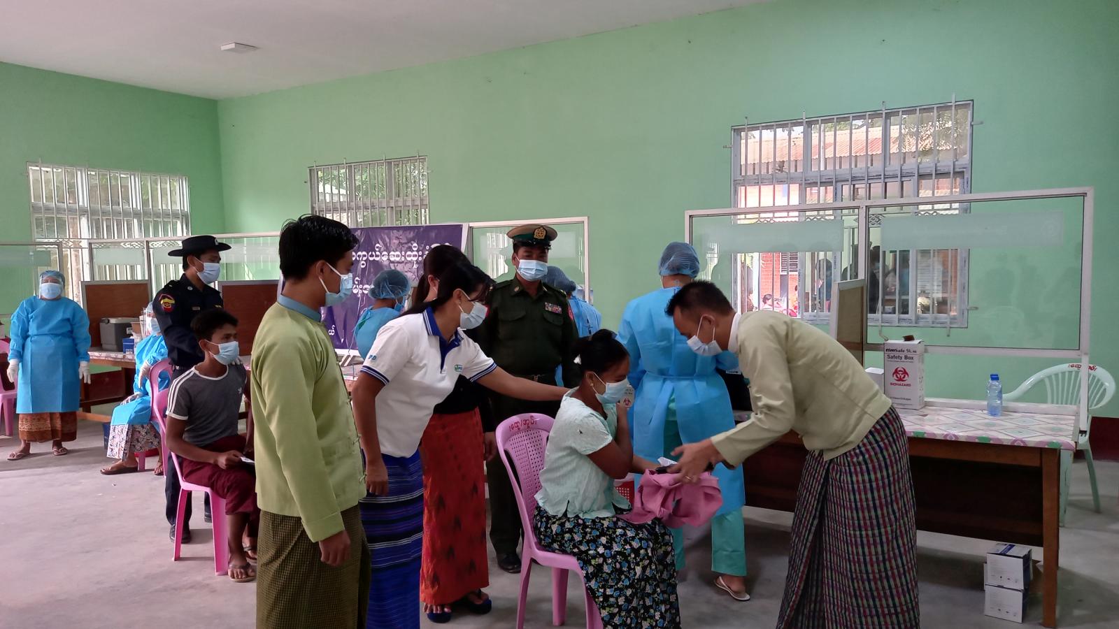 အဆိုပါကာကွယ်ဆေး ထိုးနှံပေးနေမှုအခြေအနေများကို မြို့နယ်ကိုဗစ်-၁၉ ထိန်းချုပ်ရေးနှင့် အရေးပေါ်တုံ့ပြန်ရေးကော်မတီဝင်များနှင့် မြို့နယ်အဆင့်ဌာနဆိုင်ရာများက နေ့စဉ်ကြီးကြပ်၍ မြို့နယ်မီးသတ်တပ်ဖွဲ့ဝင်များနှင့် မြို့နယ်ကြက်ခြေနီတပ်ဖွဲ့ဝင်များက ဝိုင်းဝန်းကူညီဆောင်ရွက် ပေးလျက်ရှိပြီး ဦးတည်အုပ်စုများအလိုက် ဒုတိယအကြိမ် ကာကွယ်ဆေးထိုးနှံရန် ကျန်ရှိနေသူ များအား ကျန်းမာရေးဝန်ကြီးဌာန၏ လမ်းညွှန်ချက်များနှင့်အညီ ဆက်လက်ထိုးနှံပေးသွားမည် ဖြစ်ကြောင်း မြို့နယ်ကိုဗစ်-၁၉ ထိန်းချုပ်ရေးနှင့် အရေးပေါ်တုံ့ပြန်ရေးကော်မတီထံမှ သိရှိရသည်။
