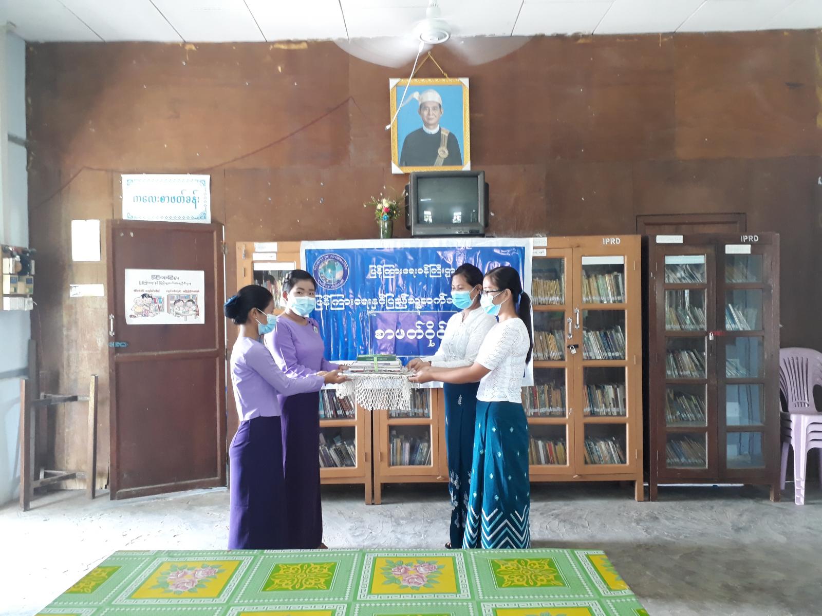 ထို့နောက် မိခင်နှင့်ကလေး/ အမျိုးသမီးရေးရာအသင်းအဖွဲ့များမှ သုတ/ ရသ စာအုပ်စာစောင် များပေးအပ်လှူဒါန်းရာ မြို့နယ်ပြန်ကြားရေးနှင့်ပြည်သူ့ဆက်ဆံရေးဦးစီးဌာနမှူး ဒေါ်ခိုင်သက်မွန်နှင့် စာကြည့်တိုက်လက်ထောက်-၃ ဒေါ်စာမဆီး တို့က လက်ခံရယူခဲ့ကြောင်းသိရှိရသည်။