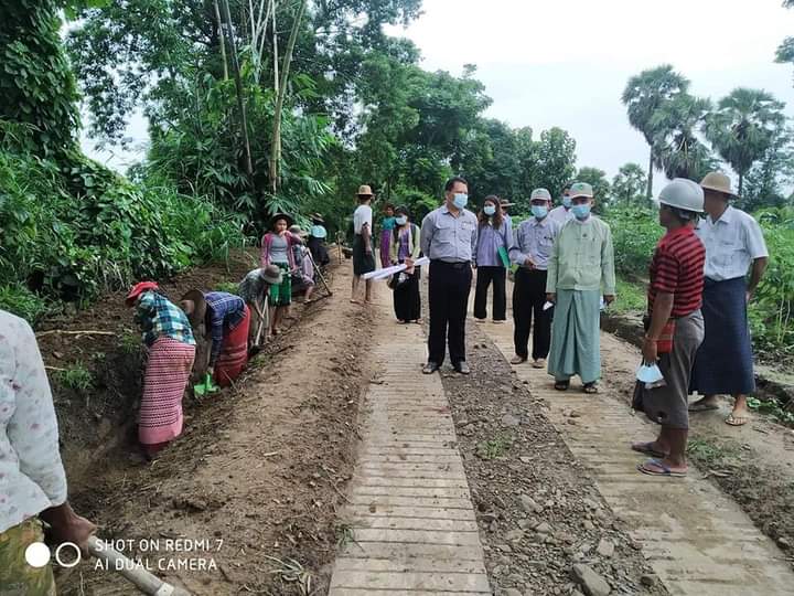 ဧရာဝတီတိုင်းဒေသကြီး၊ ဟင်္သာတခရိုင်၊ လေးမျက်နှာမြို့နယ် ကျေးလက်ဒေသ ဖွံ့ဖြိုးတိုးတက်ရေး ဦးစီးဌာနက နိုင်ငံတော်မှ ချမှတ်ထားသော (Covid-19) ကာလ စီးပွားရေးကုစားမှုအစီအစဉ်(CERP)အရ ကျေးလက်ဒေသနေ မိသားစု များ ဝင်ငွေလျော့နည်းလာမှုနှင့် စားဝတ်နေရေး အခက်အခဲများကို ကုစားပေးနိုင်ရန် (Cash for work)စီမံကိန်းလုပ်ငန်း များ အကောင်အထည်ဖော်ဆောင်ရွက်နေသည့် ကျေးရွာများသို့ ဧရာဝတီတိုင်းဒေသကြီး ကျေးလက်ဒေသဖွံ့ဖြိုးတိုးတက်ရေးဦးစီးဌာန တိုင်းဒေသကြီးဦးစီးမှူး ဦးနေထက်ရှိန်နှင့် တာဝန်ရှိသူများက ယမန်နေ့ ညနေ ၃ နာရီက ကွင်းဆင်းစစ်ဆေးခဲ့ကြောင်း သိရသည်။