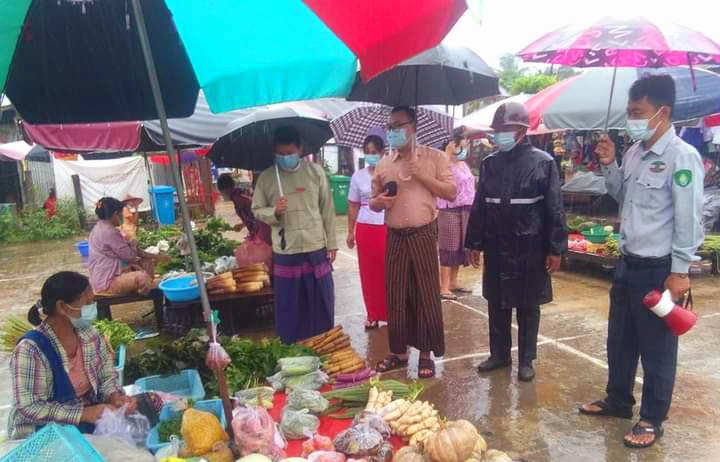 ကရင်ပြည်နယ်၊ ကော့ကရိတ်ခရိုင်၊ ကျိုက်ဒုံမြို့တွင် ယနေ့နံနက် ၇ နာရီက မြို့မဈေးတွင် ကိုဗစ်-၁၉ ကူးစက်မြန်ရောဂါ ကြိုတင်ကာကွယ်နိုင်စေရေးအတွက် ဈေးရောင်းဈေးဝယ်သူများ လိုက်နာရမည့်စည်းမျဉ်းစည်းကမ်းများနှင့် ကိုဗစ်ရောဂါကာကွယ်ရေး အသိပညာပေးခြင်းများ ဆောင်ရွက်ခဲ့ပါသည်။