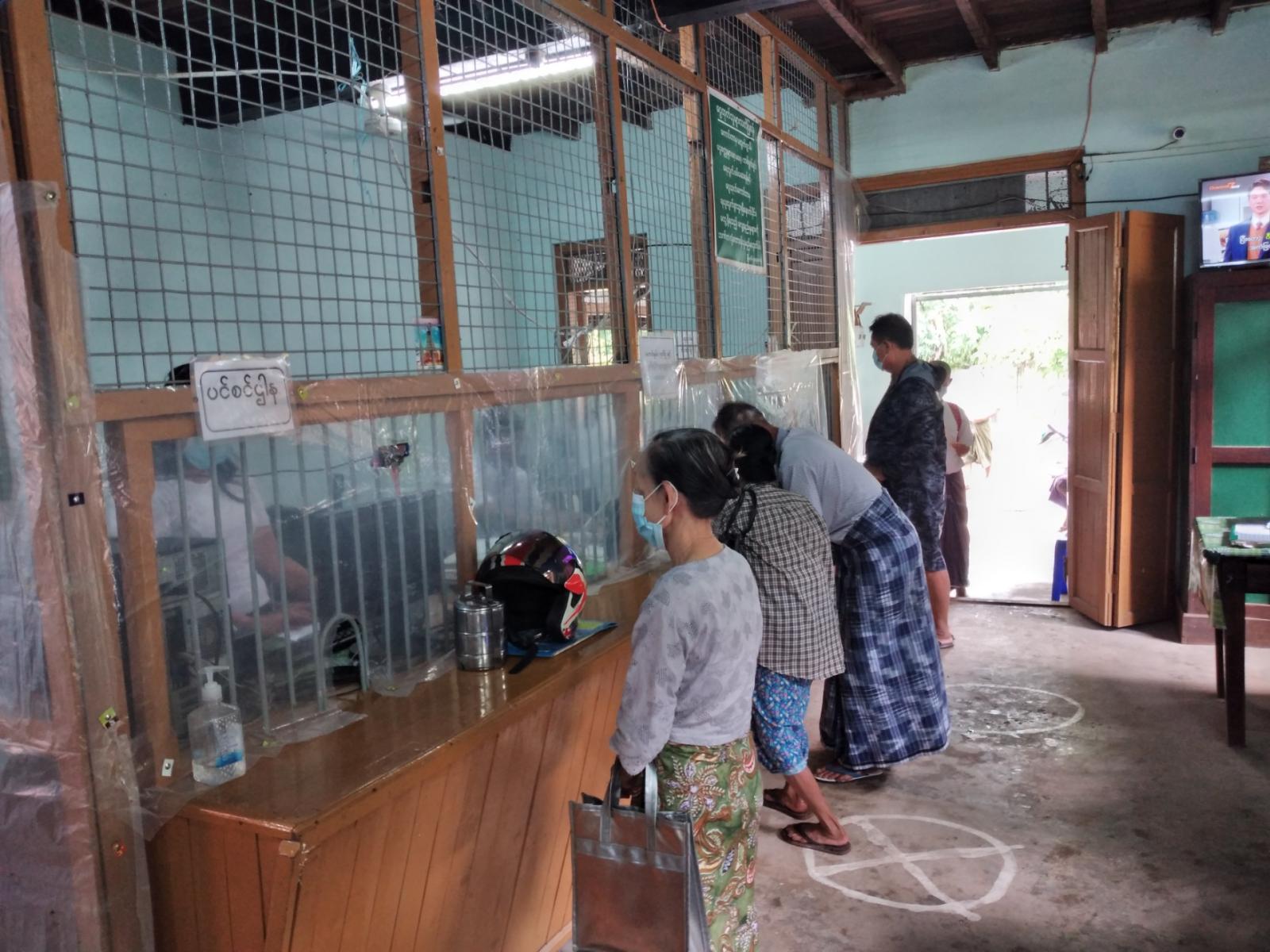 ထိုသို့ ပင်စင်လစာများထုတ်ပေးရာတွင် ကိုဗစ်-၁၉ ရောဂါကာကွယ်ထိန်းချုပ်ရေး အတွက် တစ်ကြိမ်လျှင် ၁၅ ဦးစီကို ၃ ပေခြားစီ တန်းစီစေပြီး ဘဏ်ထဲသို့ မဝင်ခင် လက်ဆေးဘေစင်၌ လက်ဆေးစေခြင်း၊ နှာခေါင်းစည်းများ တပ်ဆင်၍ အပူချိန်တိုင်း ကိရိယာဖြင့် အပူချိန်တိုင်းပေးခြင်းများကို စနစ်တစ်ကျ ဆောင်ရွက်ပေးပြီး လူစုလူဝေး မဖြစ်ပေါ်စေရန် ဘဏ်ဘေးမြေကွက်လပ်၌ အငြိမ်းစားများ နားနေနိုင်ရန် နေရာ သီးသန့် စီစဉ်ပေးထားကြောင်း သိရသည်။