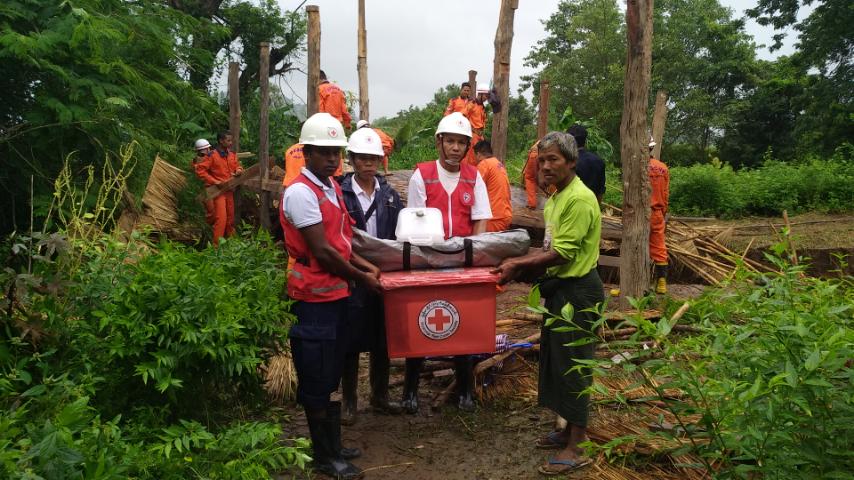ကမ်းပါးပြိုကျမှုကြောင့်ပြောင်းရွှေ့ခဲ့ရသည့် နေအိမ်အား မြို့နယ်ကြက်ခြေနီအသင်းခွဲနှင့် ကြက်ခြေနီ သူနာပြုတပ်ဖွဲ့မှ Family Kit 1 Shelter ၊ Toolkit Jerry Can (၂)ဘူး၊ ပစ္စည်း(၁၉)မျိုးပါ Hygiene Kit ပုံး (ကာလတန်ဖိုး(၂)သိန်း)ခန့် ပစ္စည်း များ၊ ရေသန့်ဗူးများ၊ တစ်ကိုယ်ရေ ကျန်းမာရေးသုံးပစ္စည်းများ၊ အမျိုးသမီးသုံးပစ္စည်းများ၊ တာပေါ်လင်၊ ပေါက်တူး၊ လွှ၊ ဂေါ်ပြား၊ တူ၊ ပေါက်စိန်၊ တူရွင်း စသည့်ပစ္စည်းများကို အိမ်ထောင်စု၀င်များ လက်၀ယ်အရောက် ထောက်ပံ့ ပေးအပ် ခဲ့ကြောင်းသိရှိရသည်။