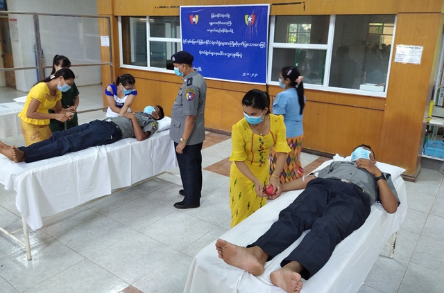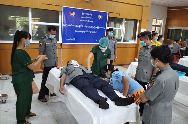 မန္တလေးတိုင်းဒေသကြီး၊ ကျောက်ဆည်မြို့၊ အထွေထွေရောဂါကု ပြည်သူ့ဆေးရုံကြီးတွင် (၅၆) နှစ်မြောက် မြန်မာနိုင်ငံရဲတပ်ဖွဲ့နေ့ကို ကြိုဆိုဂုဏ်ပြုသောအားဖြင့် ယနေ့နံနက် (၈) နာရီက ခရိုင်ရဲတပ်ဖွဲ့မှူး၊ ဒုတိယရဲမှူးကြီး အောင်မြင့်သိန်းနှင့် မြို့နယ်အတွင်းရှိ ရဲအရာရှိများ၊ ရဲတပ်ဖွဲ့ဝင်များသည် စုပေါင်းသွေးလှူဒါန်းခြင်းများ ဆောင်ရွက်ခဲ့ကြောင်း သိရသည်။