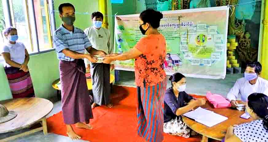 ထို့နောက် မြို့နယ်ဦးစီးမှူးနှင့် ဝန်ထမ်းများအဖွဲ့က ပွင့်ဖြူမြို့နယ် မြစိမ်းရောင်စီမံကိန်းဝင် လယ်ဖီလာကျေးရွာရှိ စိုက်ပျိုးရေး ၊ မွေးမြူရေး ၊ အရောင်းအဝယ်လုပ်ငန်း လုပ်ကိုင်သည့် စီမံကိန်းဝင်အသင်းသား (၁၄၄)ဦးအား မြစိမ်းရောင်စီမံကိန်း လုပ်ငန်းများ ဆက်လက်လုပ်ကိုင်နိုင်ရေးအတွက် ပဉ္စမအကြိမ်မြောက် မြစိမ်းရောင်စီမံကိန်းရန်ပုံငွေကျပ် ၄၄ ဒသမ ၅ သန်းအား ကိုဗစ် - ၁၉ ရောဂါ ကူးစက်ပြန့်ပွားမှုမရှိစေရေး ကျန်းမာရေးနှင့် အားကစားဝန်ကြီးဌာနမှ ထုတ်ပြန်ထားသော ကျန်းမာရေးဆိုင်ရာ လမ်းညွှန်ချက်များနှင့်အညီ အသင်းသားတစ်ဦးချင်းစီ လက်ဝယ်အရောက် စနစ်တကျ ထုတ်ချေးဆောင်ရွက်ပေးခဲ့ကြောင်း သိရ သည်။