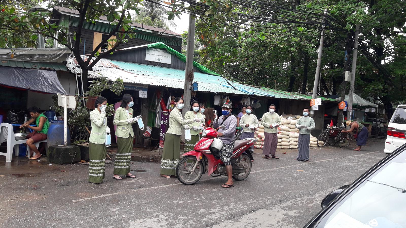 ရန်ကုန်အနောက်ပိုင်းခရိုင်၊ အလုံမြို့နယ်အတွင်းရှိ ပြည်သူများမှ ကိုဗစ်-၁၉ ရောဂါကာကွယ်နိုင်ရေးအတွက် မြို့နယ်အတွင်းရှိ အလုံ စျေးတွင် ပါးစပ်နှာခေါင်းစည်းများ ဝေငှခြင်းနှင့် အသိပညာပေးခြင်း လုပ်ငန်းများကို ယနေ့နံနက် ၁၀ နာရီအချိန်က ဆောင်ရွက်ခဲ့ ကြောင်း သိရသည်။