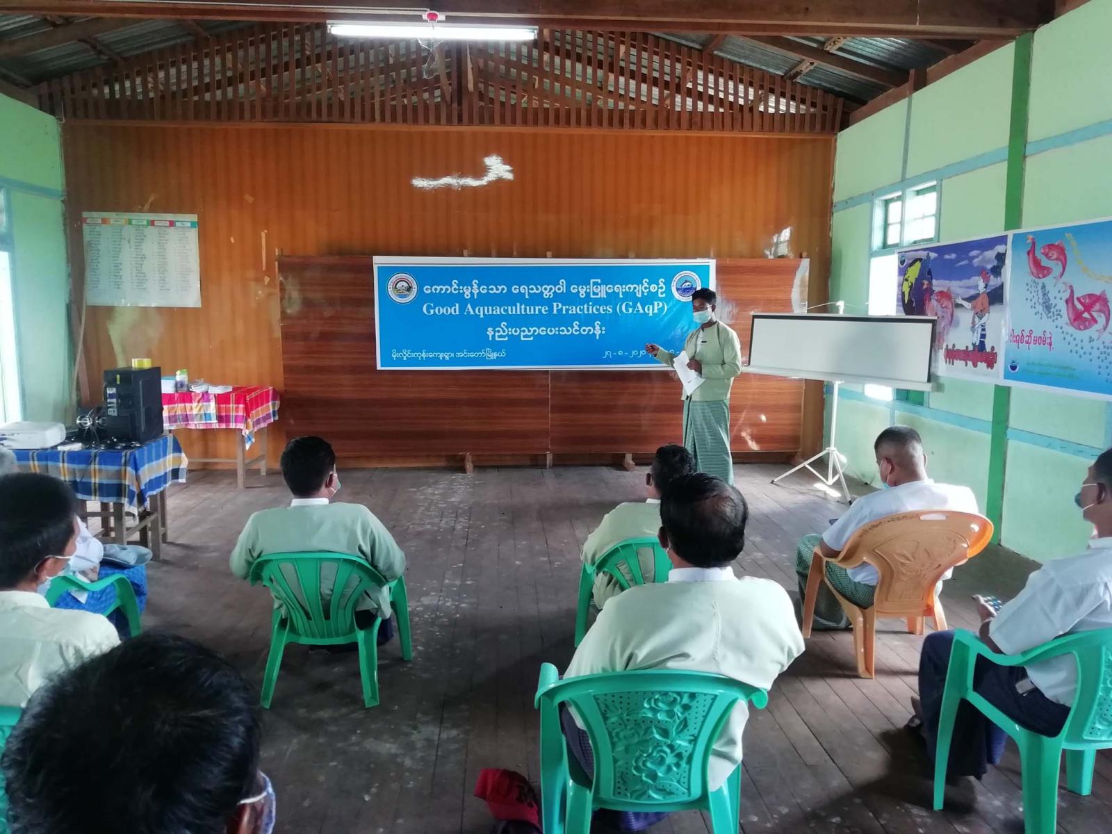 စစ်ကိုင်းတိုင်းဒေသကြီး၊ ကသာခရိုင်၊ ငါးလုပ်ငန်းဦးစီးဌာန၏ ကြီးကြပ်မှုဖြင့် အင်းတော်မြို့နယ် ခရမ်းစပ်ကုန်း ကျေးရွာအုပ်စု၊ မိုးလှိုင်းကုန်းကျေးရွာ အခြေခံပညာအလယ်တန်းကျောင်းတွင် ယနေ့ နံနက် ၁၀ နာရီအချိန်က ကောင်းမွန် သော ရေသတ္တဝါမွေးမြူရေးကျင့်စဉ် (Good Aquaculture Practices) (GAqP) နည်းပညာပေးသင်တန်းကို ဖွင့်လှစ် ခဲ့ကြောင်း သိရသည်။
