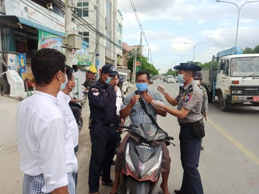 ထိုသို့ Mask တပ်ဆင်ထားခြင်း ရှိ၊ မရှိ ရှောင်တခင်စစ်ဆေးခြင်းနှင့် Mask များ တပ်ဆင်ရေးအတွက် အသိပညာပေးရာသို့ မြို့နယ်အထွေထွေအုပ်ချုပ်ရေးဦးစီးဌာန ဦးနိုင်ဝင်းနှင့်အဖွဲ့ဝင်များ၊ မြို့နယ်ရဲတပ်ဖွဲ့ဝင်များ၊ မြို့နယ်စည်ပင်သာယာရေးအဖွဲ့ဝင်များ၊ မြို့နယ်အဆင့်ဌာနဆိုင်ရာအချို့၊ ယာဉ်ထိန်းရဲတပ်ဖွဲ့ဝင်များ၊ ရပ်ကွက်အုပ်ချုပ်ရေးမှူးများနှင့် အဖွဲ့ဝင်များ၊ မီးသတ်တပ်ဖွဲ့ဝင်များ စသည့်စုပေါင်းအဖွဲ့ဖြင့် ၆၂ လမ်းပေါ် ဖြတ်သန်းသွာလာနေကြသည့် မော်တော်ယာဉ်များ၊ မော်တော်ဆိုင်ကယ်မောင်းနှင်သူများအား Mask တပ်ဆင်ထားခြင်း ရှိ၊ မရှိ ပူးပေါင်းစစ်ဆေးကာ တပ်ဆင်ထားခြင်းမရှိသူများအား Mask တစ်ခုလျှင် ၂၅၀၀ ကျပ်နှုန်းဖြင့် တစ်ဦးလျှင် Mask (၂)ခု ကို ၅၀၀၀ ကျပ်နှုန်းဖြင့်ဝယ်ယူစေကာရောင်းချခဲ့ပြီး Mask တပ်ဆင်ရေးအသိပညာပေးခြင်းကို ဆောင်ရွက် ခဲ့ရာ Mask (၈၁)ခု ရောင်းချကာ တပ်ဆင်ရေးဆောင်ရွက်ခဲ့ကြောင်း သိရသည်။