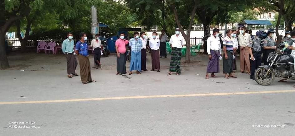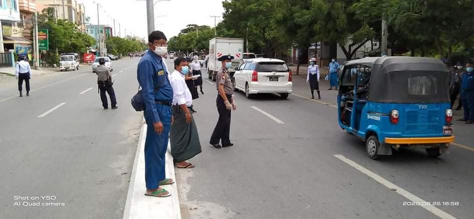 မန္တလေးမြို့၊ မဟာအောင်မြေမြို့နယ် ၆၂လမ်း၊ ၄၀× ၄၁ လမ်းကြားရှိ မဟာမြိုင် (၂) ရပ်ကွက် မနော်ရမ္မံဟစ်တိုင်းကွင်းရှေ၌တွင် လမ်းသွားလမ်းလာများ Mask တပ်ဆင်ထားခြင်း ရှိ၊ မရှိ ရှောင်တခင်စစ်ဆေးခြင်းနှင့် Mask များ တပ်ဆင်ရေးအတွက် အသိပညာပေးခြင်းလုပ်ငန်းကို ယမန်နေ့ ညနေ (၄)နာရီခွဲအချိန်က ကွင်းဆင်းစစ်ဆေးခဲ့ကြောင်း သိရသည်။