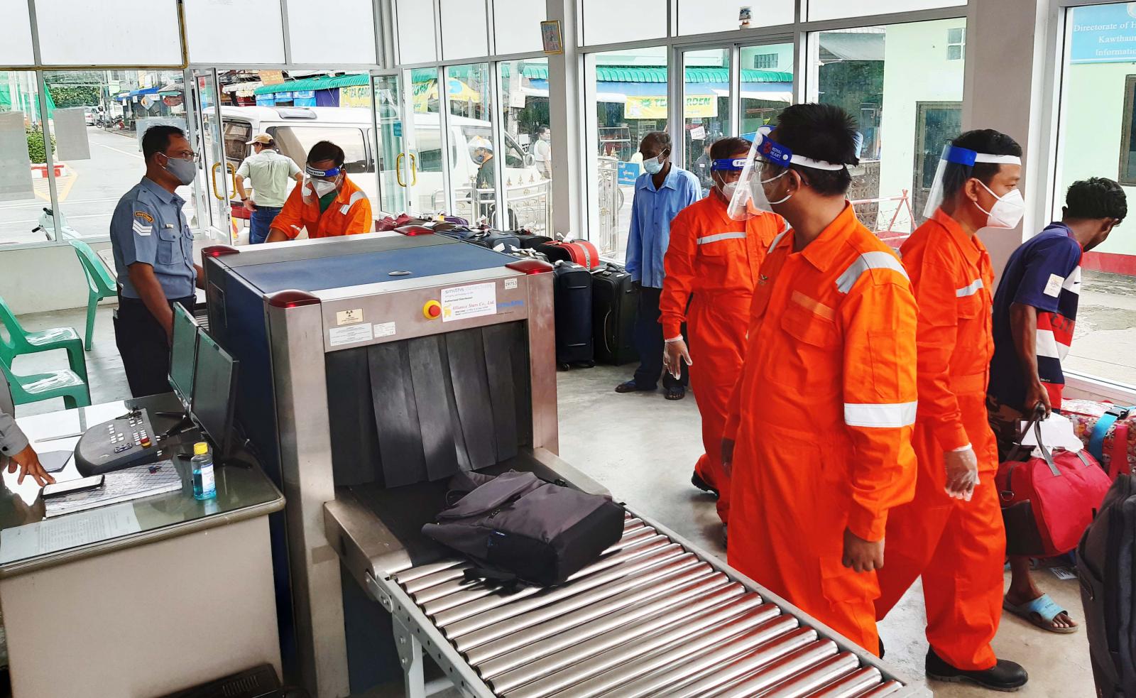 သင်္ဘောများပေါ်မှ Sign off ထွက်လာသည့် မြန်မာသင်္ဘောသား.(၂၆)ဦးအား ဆိပ်ကမ်း၌ တာဝန်ရှိ ဌာနဆိုင်ရာပူးပေါင်းအဖွဲ့နှင့် ကျန်းမာရေးဌာနမှ တာဝန်ရှိသူများက လိုအပ်သည့်ကျန်းမာရေး စစ်ဆေးမှုများ ဆောင်ရွက်ကာ ကော့သောင်းမြို့ တွင် Hotel Quarantine (၂၁)ထားရှိပြီး ၎င်းတို့၏ Swb နမူနာ များအား ရန်ကုန်အမျိုးသားကျန်းမာရေး ဓာတ်ခွဲဌာနသို့ ပို့ဆောင် ဓာတ်ခွဲစစ်ဆေးသွားမည်ဖြစ်ကြောင်းသိရသည်။
