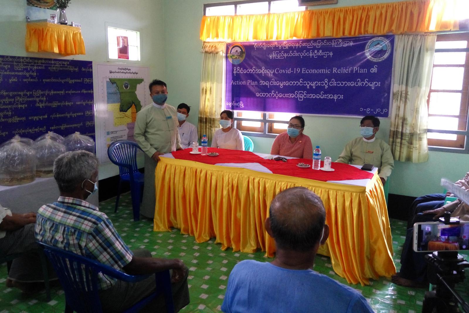 မွန်ပြည်နယ်၊ ချောင်းဆုံမြို့နယ် အတွင်းရှိ ငါးမွေးမြူခြင်း(ယာယီ)လိုင်စင်ဖြင့် ငါးမွေးမြူရေး ဆိုင်ရာ အခွန်အခ ပေးဆောင်ပြီး ငါးမွေးမြူရေးလုပ်ငန်းကို ဆောင်ရွက်လျက်ရှိသော ငါးမွေး တောင်သူများထံသို့ ကိုဗစ်-၁၉ (Economic Relief Plan) (Action Plan)အရ ငါးသားပေါက်များ ထောက်ပံ့ပေးအပ်ခြင်း အခမ်းအနားကို ယမန်နေ့ နံနက် (၈:၃၀)နာရီအချိန်က မြို့နယ်ငါးလုပ်ငန်းဦးစီးဌာနရုံးတွင် ကျင်းပပြုလုပ်ခဲ့သည်။