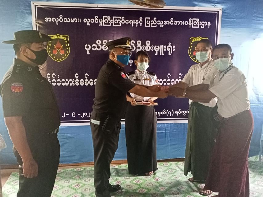 ဧရာဝတီတိုင်းဒေသကြီး၊ ပုသိမ်မြို့တွင် ၂၀၂၀ ပြည့်နှစ်၊ ပါတီစုံဒီမိုကရေစီ အထွေထွေရွေးကောက်ပွဲတွင် ဆန္ဒမဲပေးမည့် အမည်စာရင်းတွင်ပါရှိပြီး နိုင်ငံသားစိစစ်ရေးကတ်ပြား မရရှိသေးသည့် ပြည်သူများအား ပုသိမ်မြို့နယ် လူဝင်မှု ကြီးကြပ်ရေးနှင့် ပြည်သူ့အင်အားဆိုင်ရာ ဦးစီးဌာနမှ မြို့နယ်ဦးစီးမှူးနှင့် ဝန်ထမ်းများက ကွင်းဆင်းဆောင်ရွက် လျက်ရှိရာ ယမန်နေ့ နံနက် ၁၀ နာရီက အမှတ် ၇ နယ်မြေ၊ ရာမည ရပ်ကွက် အုပ်ချုပ်ရေးမှူးရုံးတွင် နိုင်ငံသားစိစစ်ရေး ကတ်ပြား ၅၀၀ ကျော် ပေးအပ်ခဲ့ပါသည်။