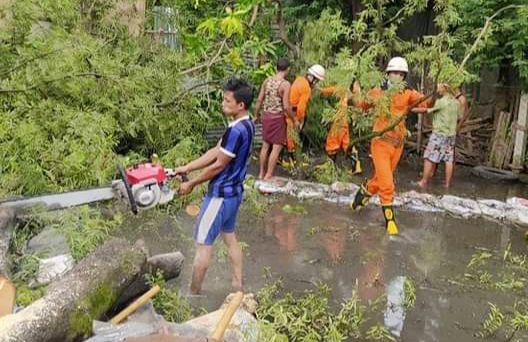 ပြိုလဲသွားသည့် မန်းကျည်းပင်အား ယနေ့ နံနက်ပိုင်းတွင် မြို့နယ်မီးသတ်ဦးစီးမှူး စည်သူဝင်းနှင့် တပ်ဖွဲ့ဝင်များက လိုအပ်သည့် ပြင်ဆင်ဆောင်ရွက်မှုများ ပြုလုပ်ပေးနိုင်ရန်နှင့် ခုတ်ထွင်ရှင်းလင်းရေး အတွက် လူမှုရေးအသင်းအဖွဲ့ များနှင့်အတူ သွားရောက်ခဲ့ပြီး ရပ်ကွက်အုပ်ချုပ်ရေးမှူး ဦးလှထွေးနှင့် အဖွဲ့ဝင်များ အနီးပတ်ဝန်းကျင်ရှိ ပြည်သူ များ၏ ပူးပေါင်းကူညီဆောင်ရွက်မှုဖြင့် အဆိုပါ နေအိမ် ၂ လုံး ပေါ်သို့ ပိနေသည့် သစ်ပင်အား ခုတ်ထွင်ရှင်းလင်း ပေးခဲ့ကြောင်း သိရသည်။